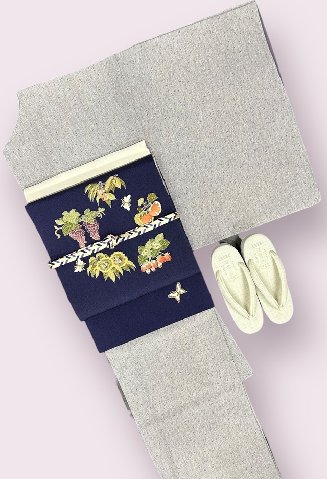 美しい暗めの紺藍色の地に、心華やぐ四季の果実のお太鼓柄が施された名古屋帯です。関東巻と関西巻とで前腹の柄が異なり、楽しみ方が広がります。また、たれ先の蝶が個性的なアクセントとなり、他にはない魅力を引き立てます。ちりめん地、ハリのある逸品です。 インスタやっております!お時間がございましたらご覧くださいませ。(@hyoutandou.kimono ) 商品は店舗にてご覧いただけます。 https://hyoutandou.tokyo 【サイズ】 ◯長さ 373 cm ◯幅 31cm 【素材】 正絹 【使用状況】 新品または新品同様の大変良い状態です 【おすすめの着物】 【おすすめの季節】 【注意事項】 ・商品のお色目は出来る限り現物に近づけて調整しておりますが、ご覧いただいているモニターの環境等によって多少の差異が生じます。表記の和色を「和色大辞典」https://www.colordic.org/w/にてご確認頂けますようお願い申し上げます。 ・着物の帯の寸法は一点ずつスタッフの手で測っております。生地の性質や測り方で若干の誤差が出る場合がございます。どうぞご了承くださいませ。 ・商品到着後、一週間以内に記載されていない欠陥がございましたら、ご着用前のみご返金・ご返品を承ります。 ・基本的に商品の殆どが中古・新古のお品となります。保管時のにおいがある場合がございます。お気になさるお客様のご購入はお控え頂けますようお願い申し上げます。 ・出品商品は店舗にて販売してる場合もございます。突然商品の掲載を取りやめる場合がございます。予めご了承ください。