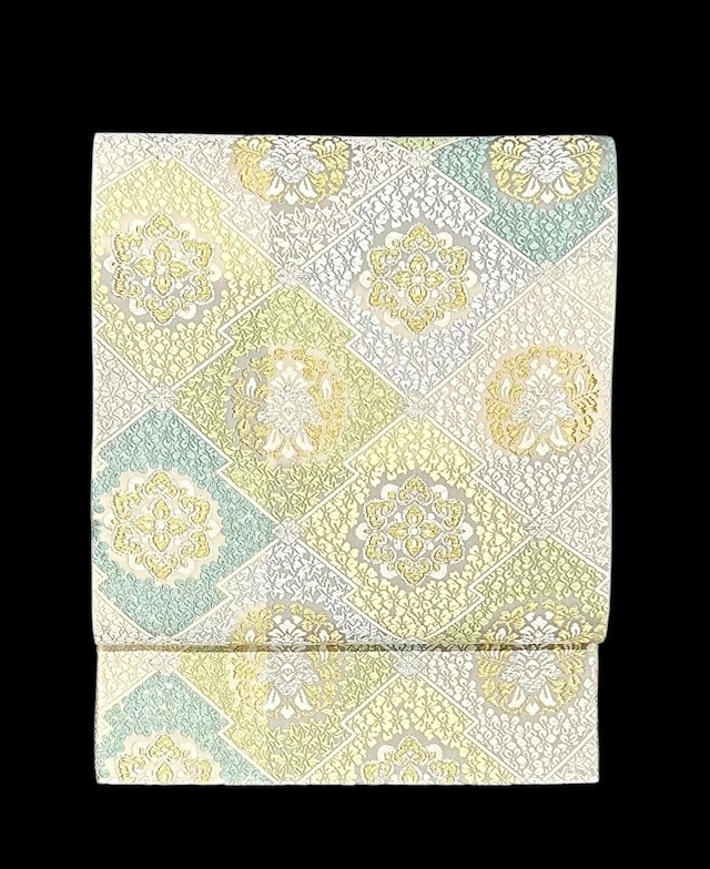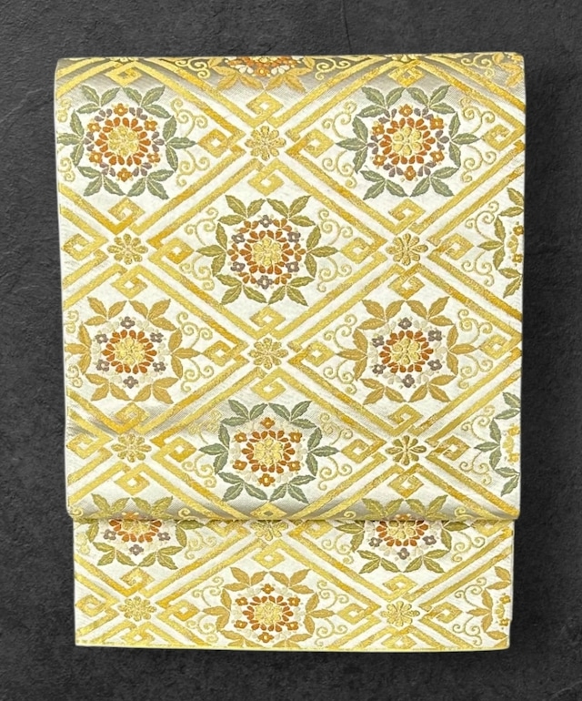 袋帯 金糸×銀糸 菱文の中に華紋 長さ 442㎝ Q6279