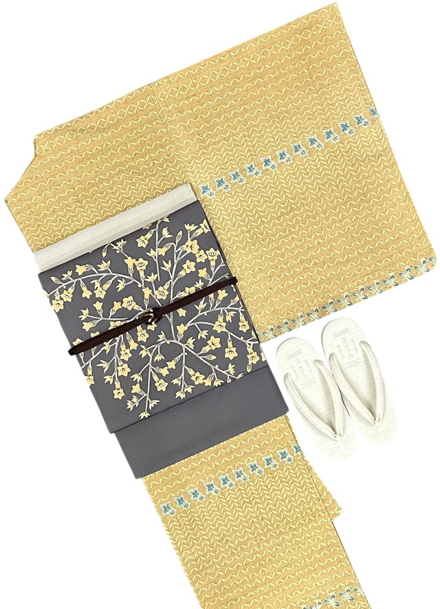 こちらは、くすんだ柳煤竹色を基調に、百入茶いろの縦線と焦茶、江戸茶、菜種油色、榛色の多彩な色糸で花のような幾何学模様が織り込まれた、沖縄伝統の美しい花織の一品です。柔らかな質感ながらも、しっかりとした仕立てが魅力です。その独特の模様は、特別な場面にはもちろん、日常使いにもぴったりなアイテムです。 インスタやっております!お時間がございましたらご覧くださいませ。(@hyoutandou.kimono ) 商品は店舗にてご覧いただけます。 https://hyoutandou.tokyo 【サイズ】 ◯肩身丈 163.5cm ◯裄丈 67cm ◯前幅 28cm ◯後幅 32cm ◯袖丈 49cm ◯袖幅 34cm 【折代】 裄出し[ 袖側 3cm 身頃側 2cm ] 身丈出し [ 内揚 4cm 袖丈出し 5cm ] 実際に出る寸法等、お直しについては専門店にてご相談下さい。 【素材】 正絹 【使用状況】 目立ったシミや汚れはありません。 【おすすめ季節】 袷通年 10月~5月 【注意事項】 ・商品のお色目は出来る限り現物に近づけて調整しておりますが、ご覧いただいているモニターの環境等によって多少の差異が生じます。表記の和色を「和色大辞典」https://www.colordic.org/w/にてご確認頂けますようお願い申し上げます。 ・着物の帯の寸法は一点ずつスタッフの手で測っております。生地の性質や測り方で若干の誤差が出る場合がございます。どうぞご了承くださいませ。 ・商品到着後、一週間以内に記載されていない欠陥がございましたら、ご着用前のみご返金・ご返品を承ります。 ・基本的に商品の殆どが中古・新古のお品となります。保管時のにおいがある場合がございます。お気になさるお客様のご購入はお控え頂けますようお願い申し上げます。 ・出品商品は店舗にて販売してる場合もございます。突然商品の掲載を取りやめる場合がございます。予めご了承ください。