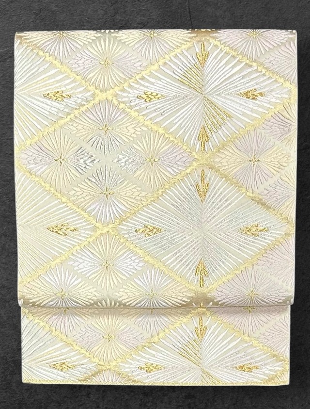 袋帯 鳥の子色地 高野槙松菱紋 長さ 435㎝ Q5075