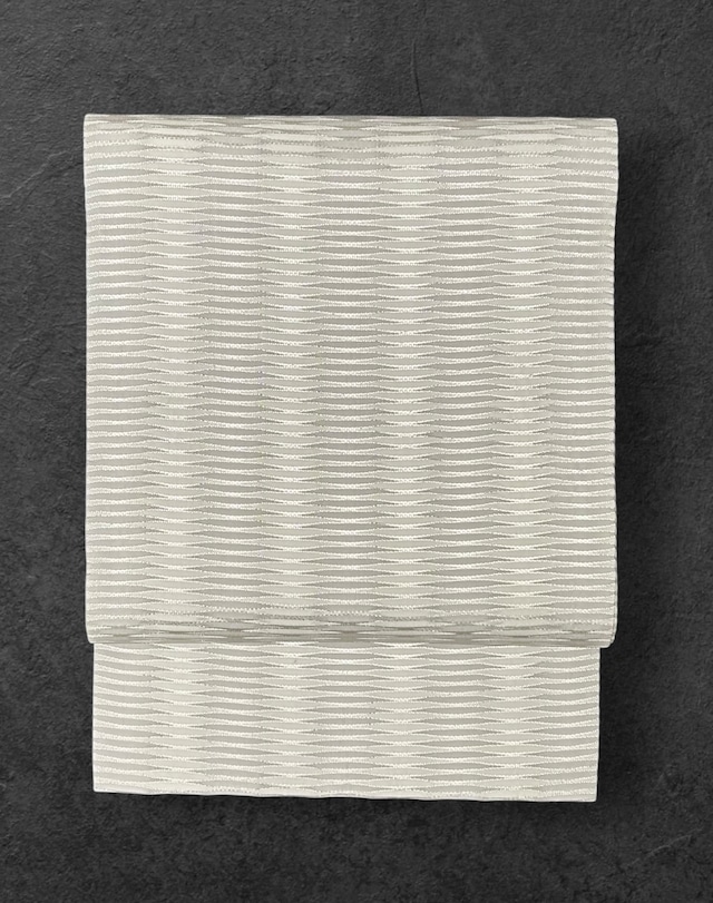 こちらの素敵な八寸名古屋帯は、モノトーン調の横段柄が印象的です。織り方を細かく変えた変化のある織模様が、見る人の目を引きつけるデザインになっています。柔らかな地は、とても心地よい肌触りで、様々な着物と組み合わせてお楽しみいただけます。開き仕立て。 インスタやっております!お時間がございましたらご覧くださいませ。(@hyoutandou.kimono ) 商品は店舗にてご覧いただけます。 https://hyoutandou.tokyo 【サイズ】 ◯長さ 379cm ◯幅 31.5 cm 【素材】 正絹 【使用状況】 目立ったシミや汚れはありません 【おすすめの着物】 小紋 紬 【おすすめの季節】 袷通年 【注意事項】 ・商品のお色目は出来る限り現物に近づけて調整しておりますが、ご覧いただいているモニターの環境等によって多少の差異が生じます。表記の和色を「和色大辞典」https://www.colordic.org/w/にてご確認頂けますようお願い申し上げます。 ・着物の帯の寸法は一点ずつスタッフの手で測っております。生地の性質や測り方で若干の誤差が出る場合がございます。どうぞご了承くださいませ。 ・商品到着後、一週間以内に記載されていない欠陥がございましたら、ご着用前のみご返金・ご返品を承ります。 ・基本的に商品の殆どが中古・新古のお品となります。保管時のにおいがある場合がございます。お気になさるお客様のご購入はお控え頂けますようお願い申し上げます。 ・出品商品は店舗にて販売してる場合もございます。突然商品の掲載を取りやめる場合がございます。予めご了承ください。