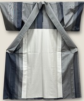 単衣 縞大島 暗めの青褐色×薄鈍色 縦縞 スッキリ&シャープ ガード加工済み 裄丈 66㎝ K4747