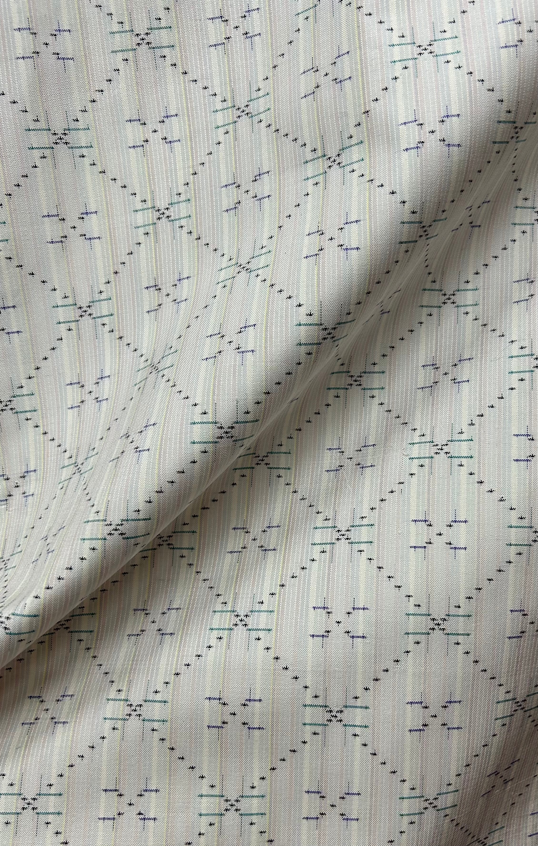 白大島 むらなか 星砂絣 伝統工芸士 紫峰作 象牙色×様々なパステル系の細い縦縞の織地 星砂絣 裄丈69 ㎝ K5106