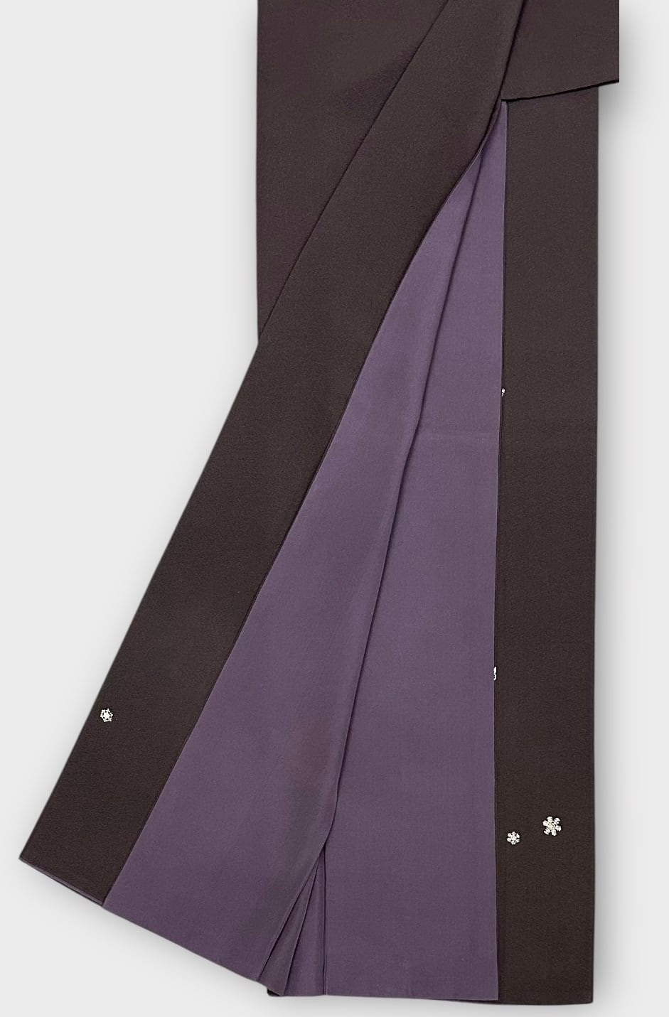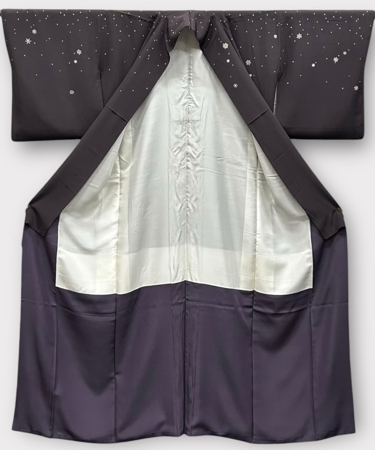 付下げ 紅消鼠色の地 雪の結晶 洛楽人工房 作家物 落款つき さが美 裄丈 66.5㎝ K5780
