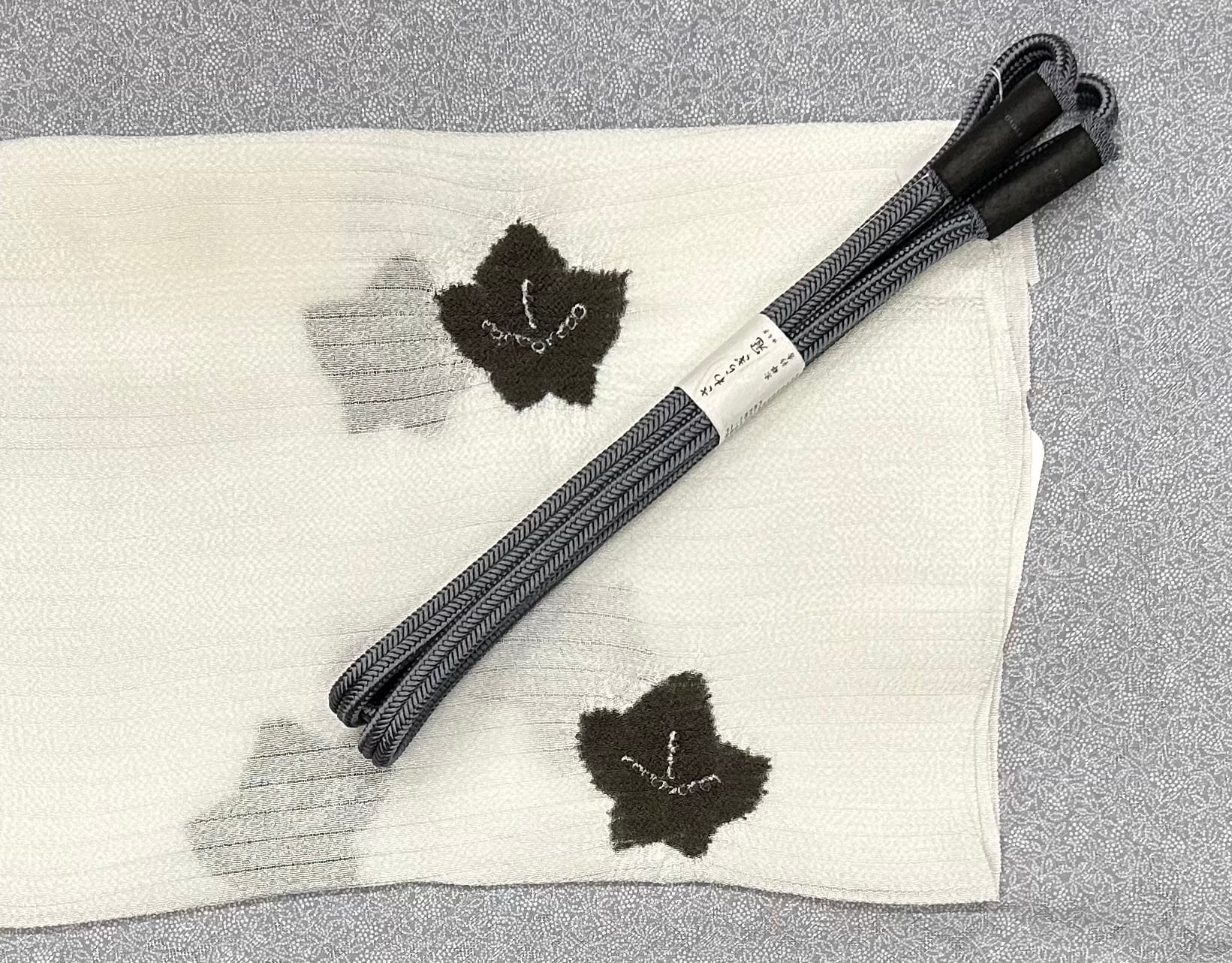 帯締めand帯あげ 衿秀製 冠組と絽ちりめん 輪出し絞り 生成り色 檳榔子染色 C5862