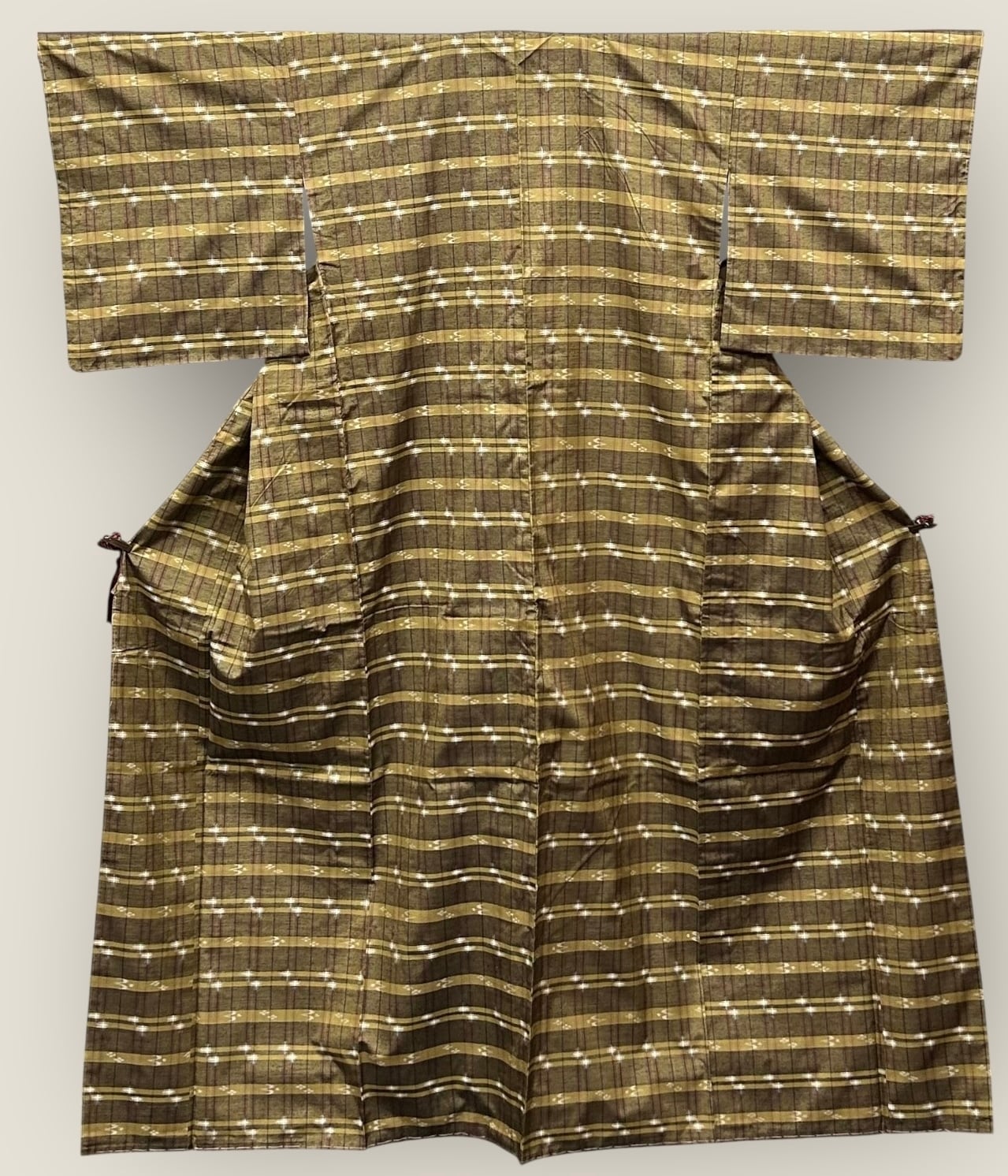 **おしゃれを楽しむ紬 茶系の格子のような琉球柄**