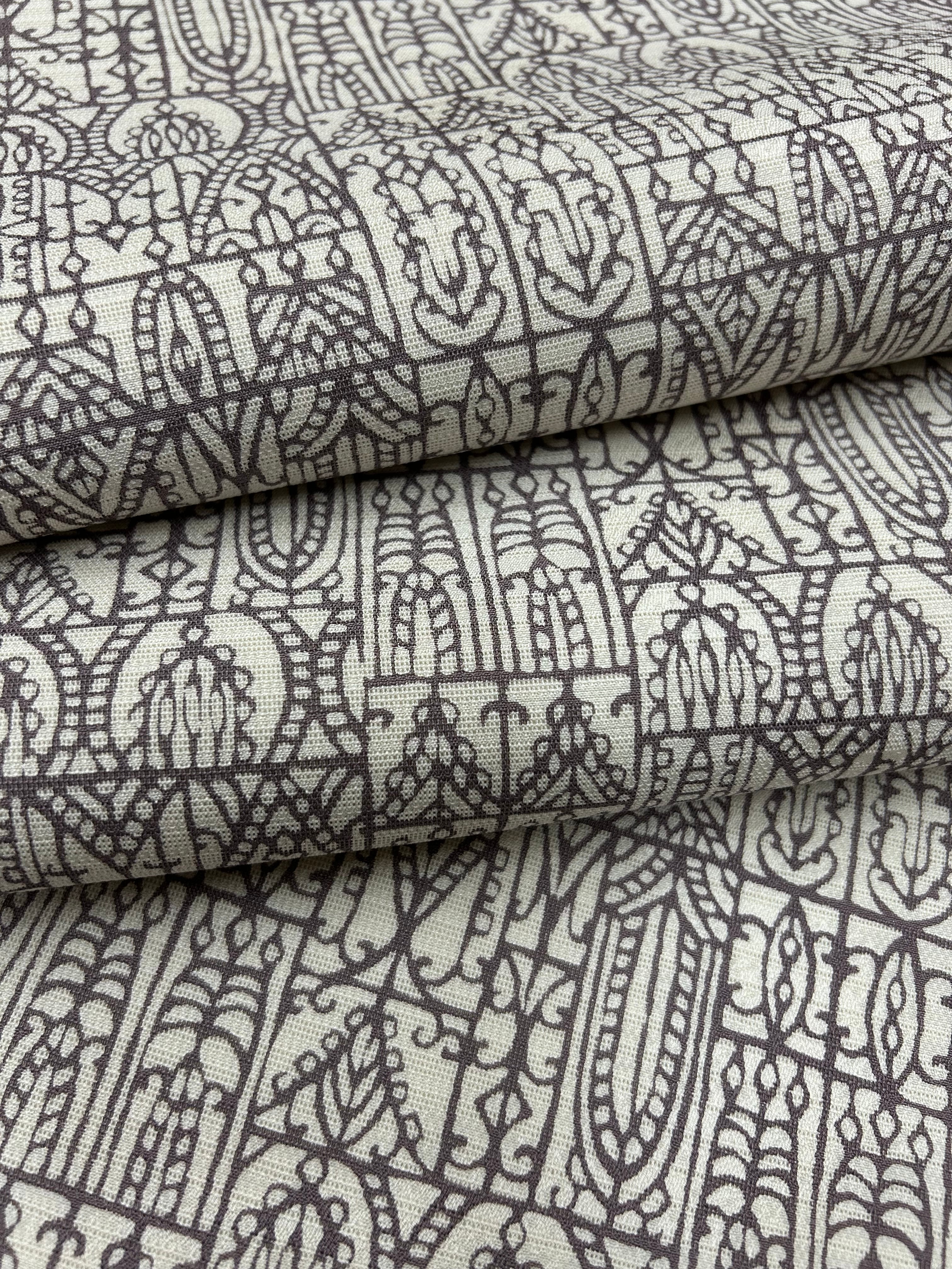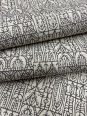 開き名古屋帯 真綿 草木染 民芸手織品 千切屋 証紙つき 練色の地 葡萄鼠色の繊細な幾何学模様 長さ 374㎝ Q5764