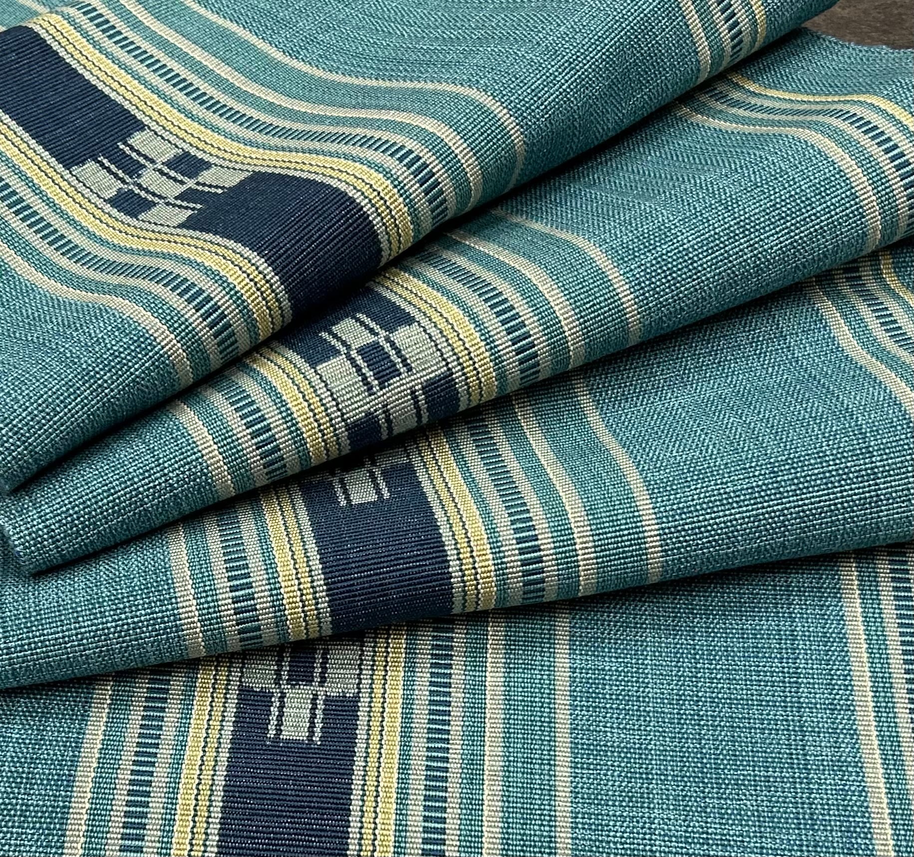 こちらは、素敵なお色味のミンサー 名古屋帯です。洗練された納戸色、藍色や蒸栗色が施され、ほんのりハリのある生地が特別な瞬間を演出します! 自慢の逸品をぜひお楽しみください。