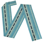 名古屋帯 ミンサー 薄い納戸色 藍色 蒸栗色など 未使用品 長さ 391.5㎝ Q5886