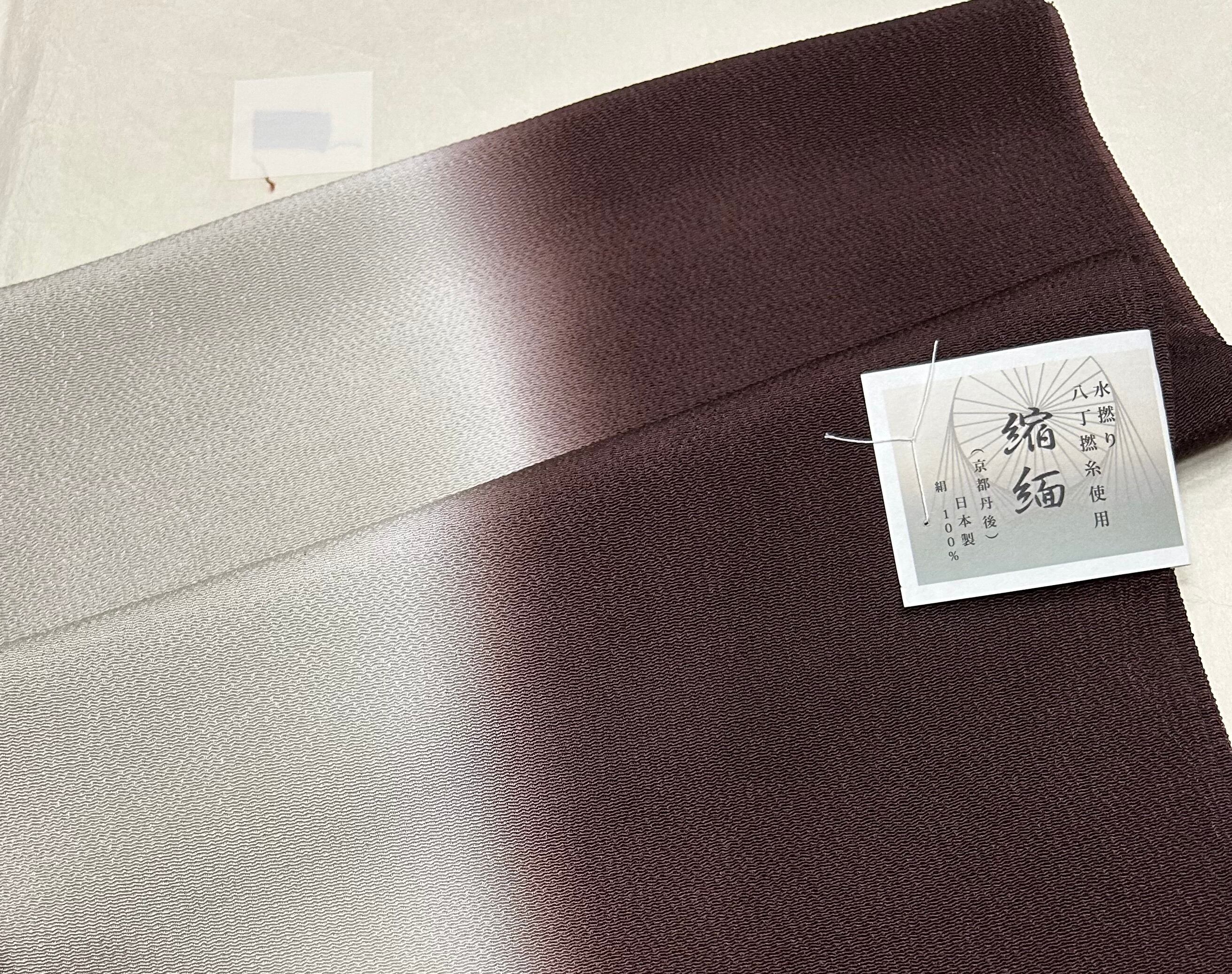 半衿や帯締め等和装小物でご周知の衿秀さんのお品です。ちりめん地の茶系の二色使いの帯揚げです。1枚あるととても便利なお品です。