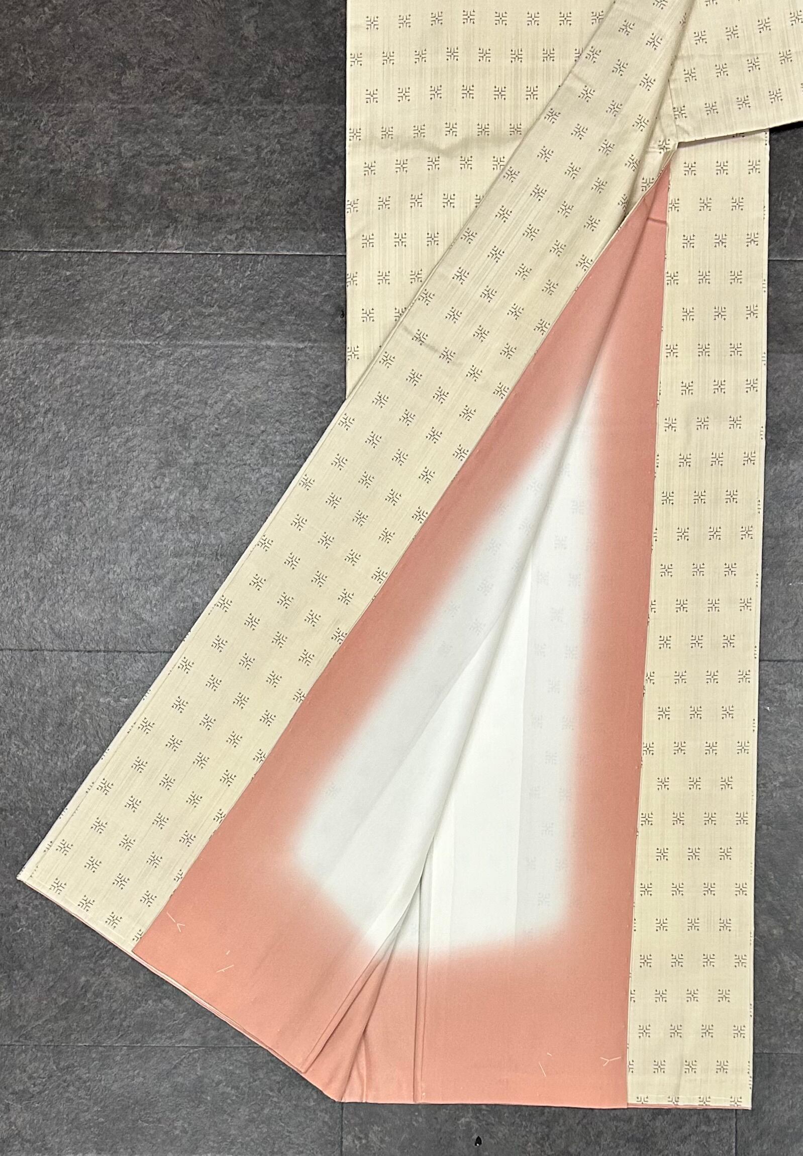白大島 うすい砥粉色の地 憲法色の細かい幾何学模様 仕付け糸つき ガード加工済み 裄丈 65.5㎝ K5047