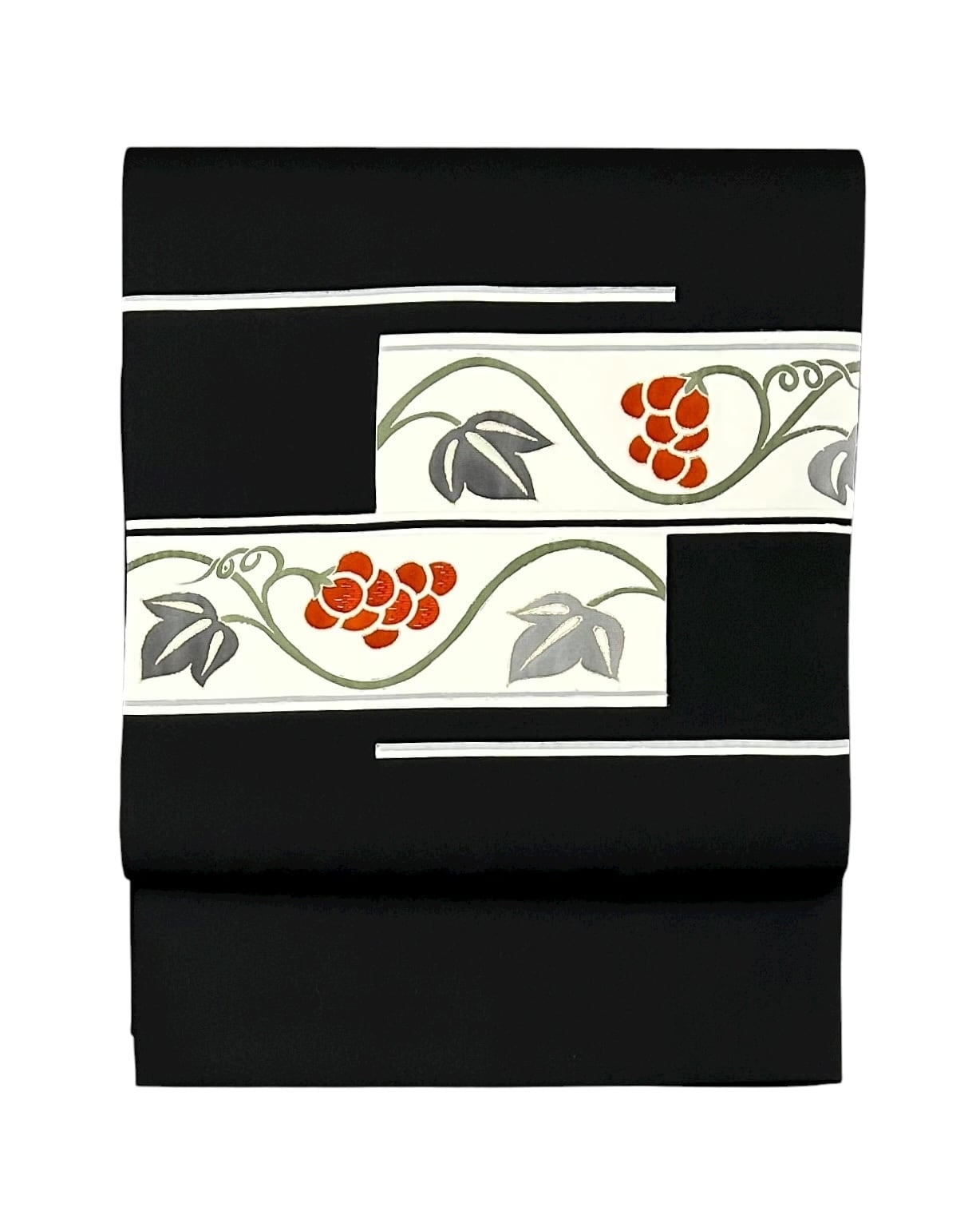 名古屋帯 黒色 葡萄唐草 開き仕立て 長さ 375㎝ Q6244