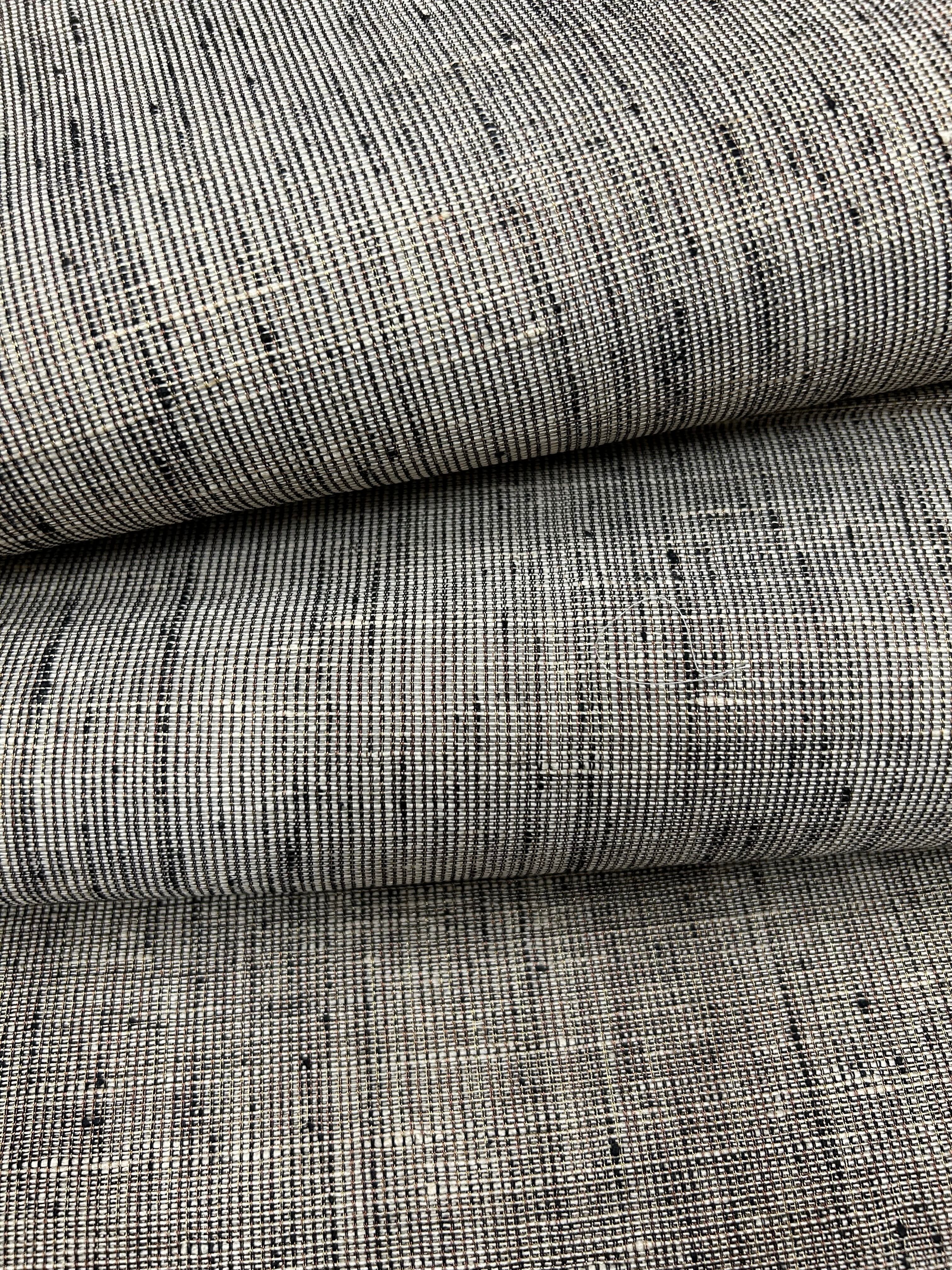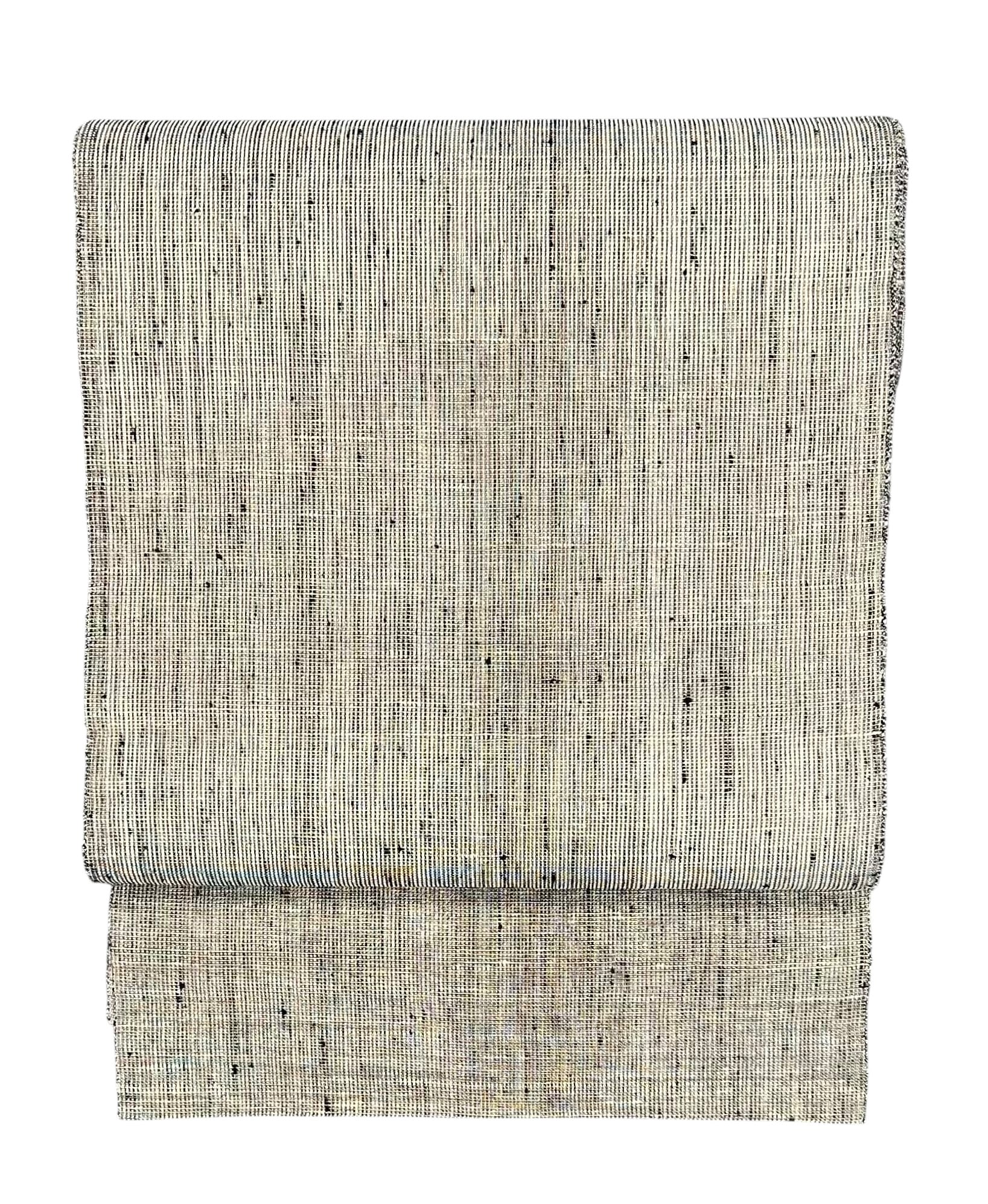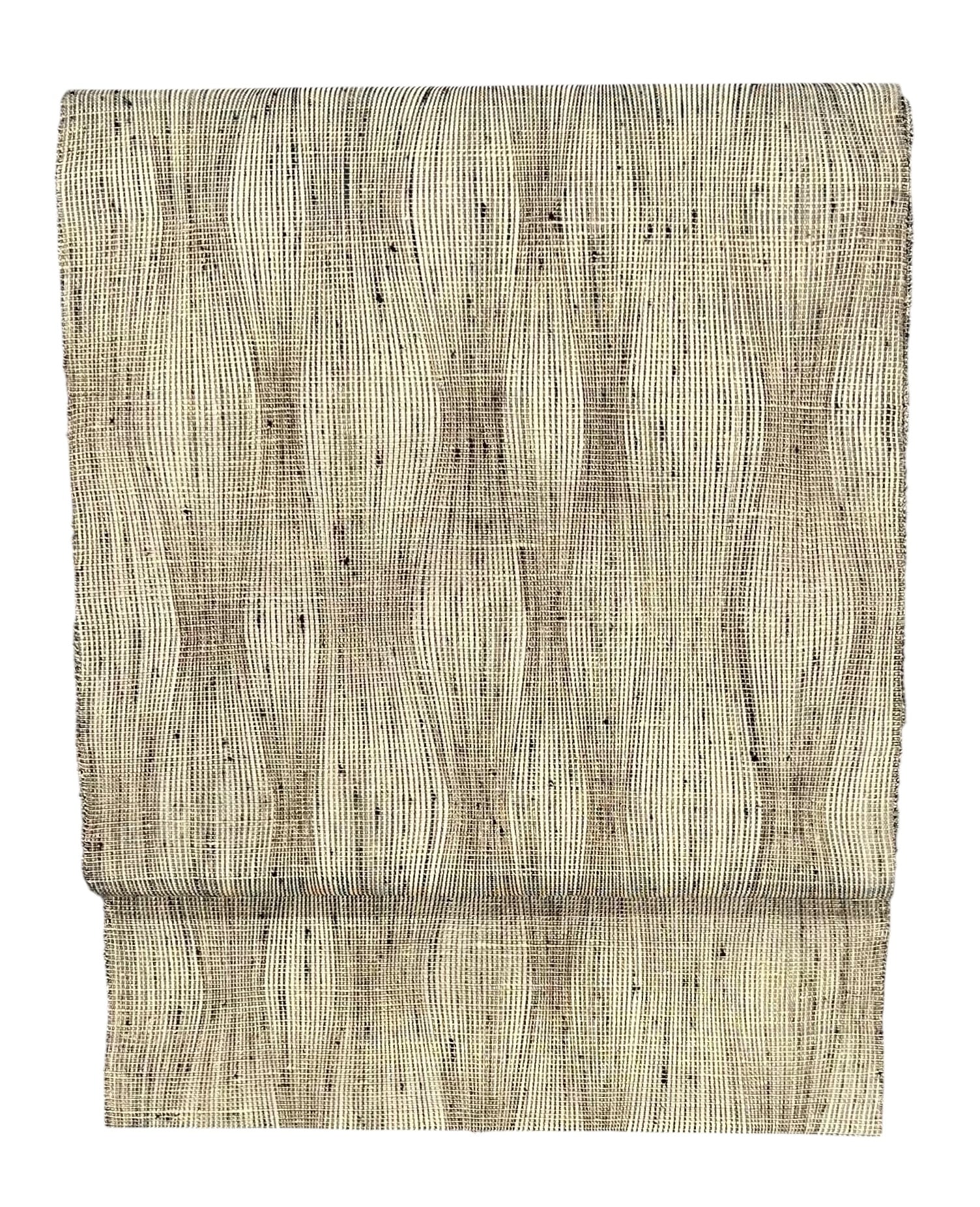 袋帯 リバーシブル 「帛筬」証紙つき 生成り色×白鼠色×黒×銅に近い金糸 よろけ縞 格子 未使用 長さ 436㎝ Q5950