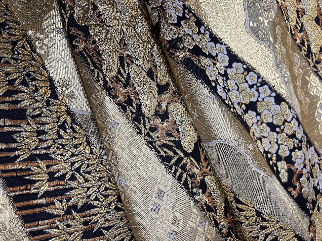 ・着物の帯の寸法は一点ずつスタッフの手で測っております。生地の性質や測り方で若干の誤差が出る場合がございます。どうぞご了承くださいませ。