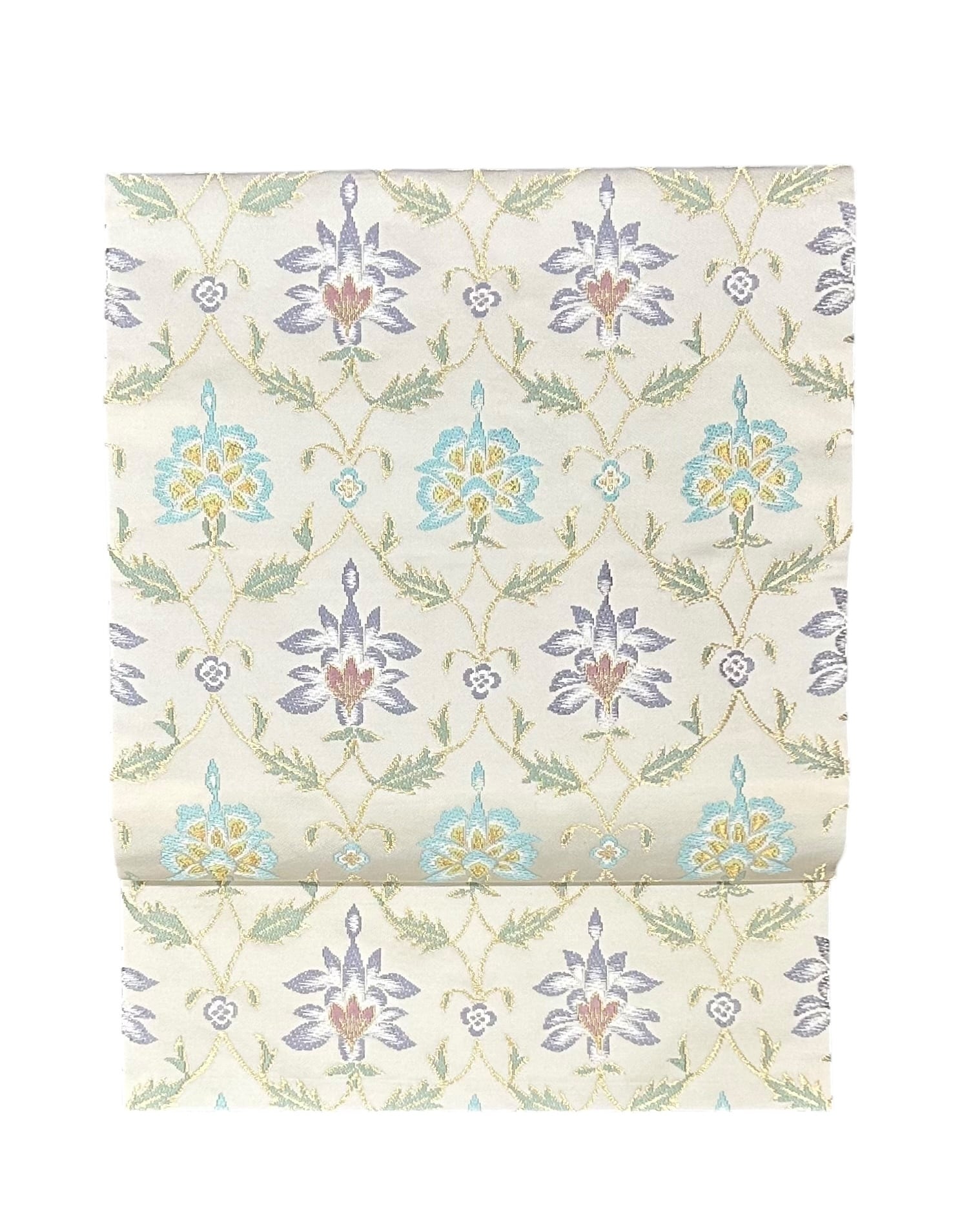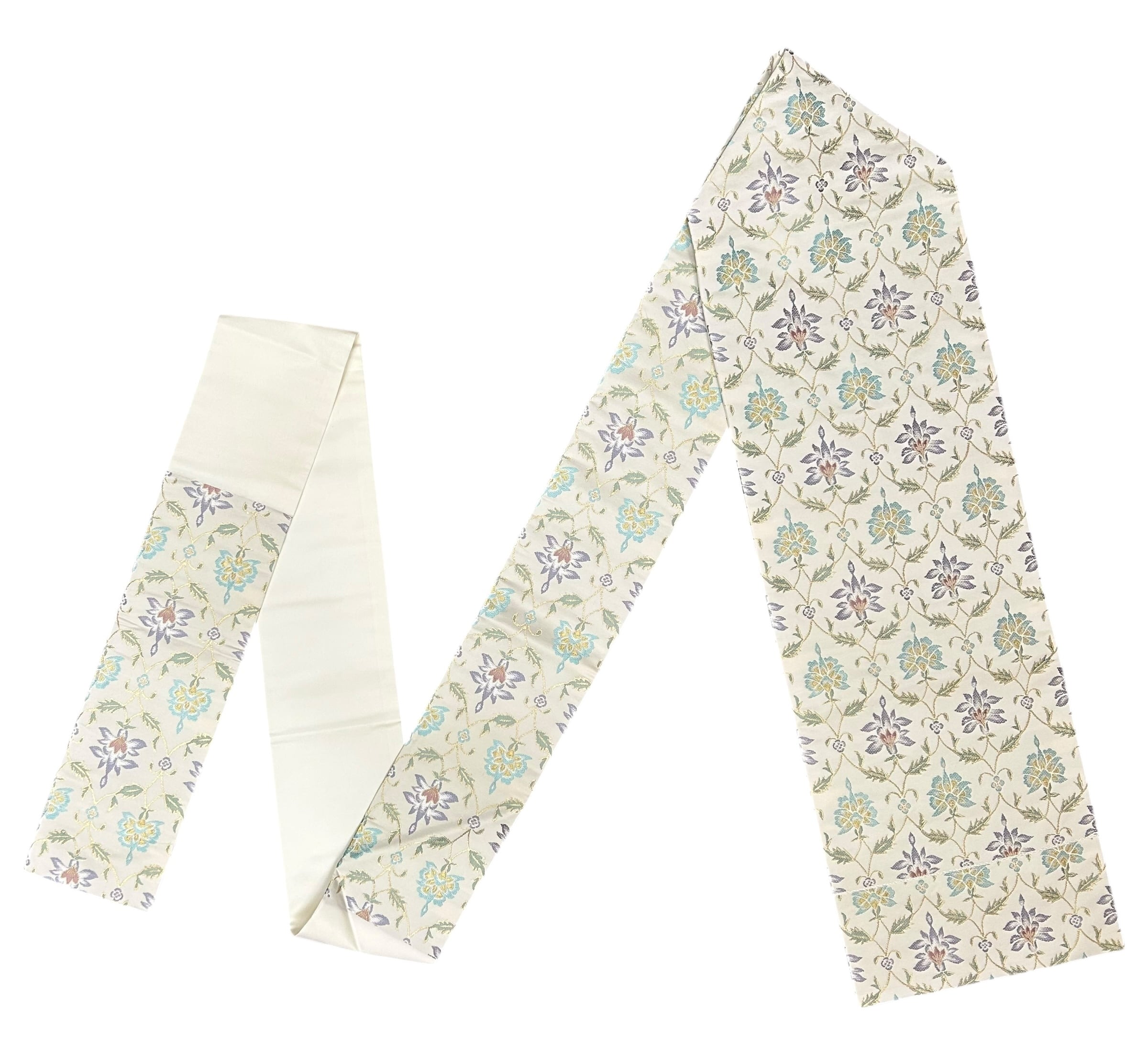 名古屋帯 象牙色 草花柄 長さ 365㎝ 未使用品 Q5763