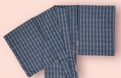 こちらのお着物は、黒味がかった濃い留紺色がベースとなり、茜色、柑子色、灰青色で織り込まれた素敵な花織です。程よくハリがあり柔らかい肌触り、所々しつけ糸あり、ガード加工済み。