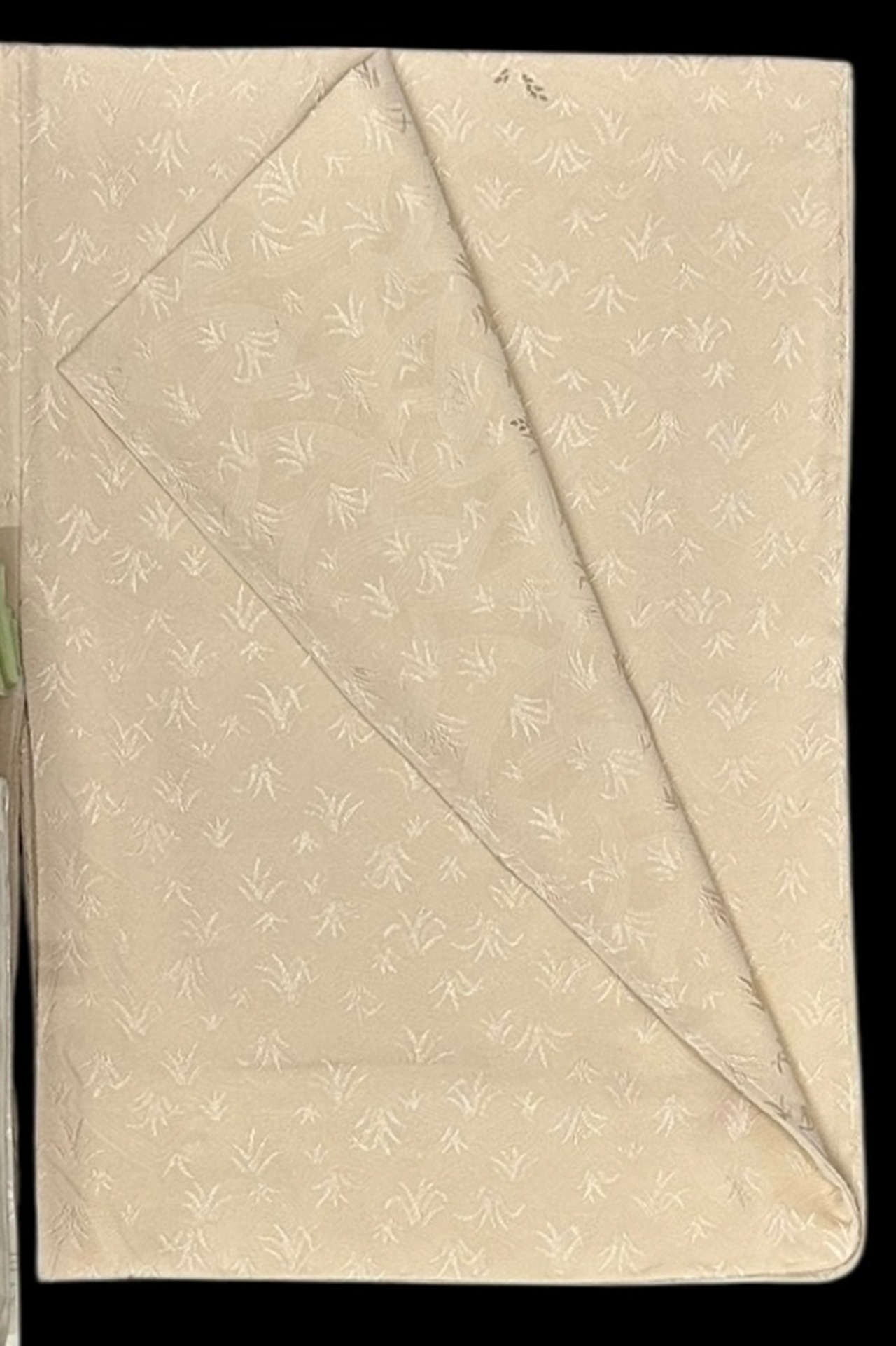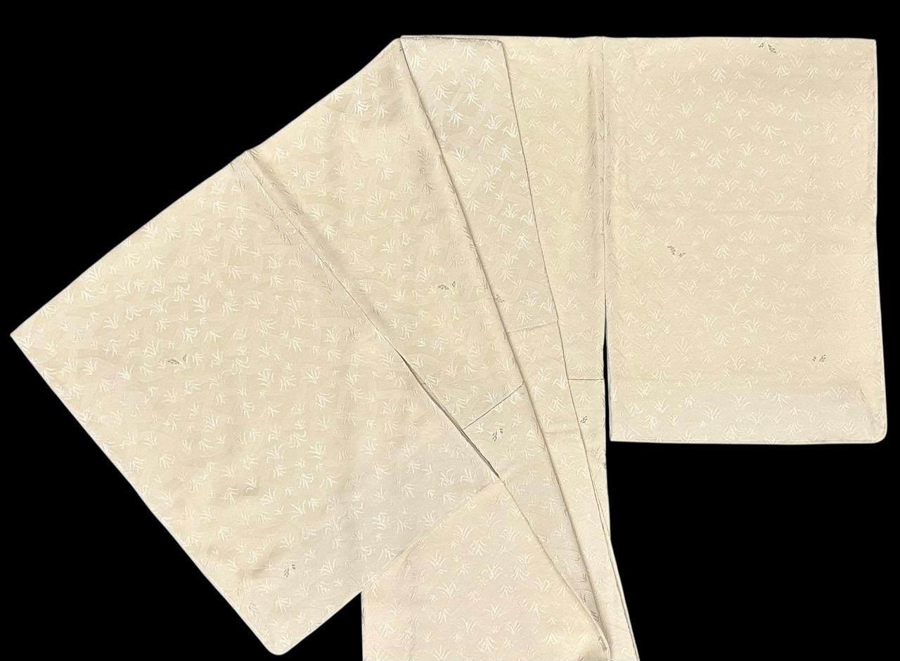 色無地 白茶色の地 上品な草花の地紋 所々花びらのような刺繡 一つ紋(縫い紋) しつけ糸つき 裄丈 68㎝ K5067