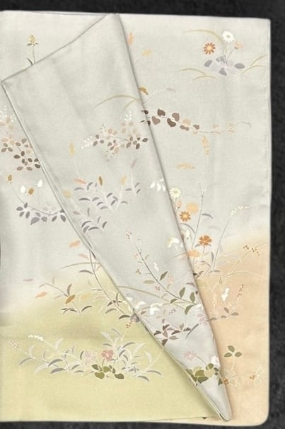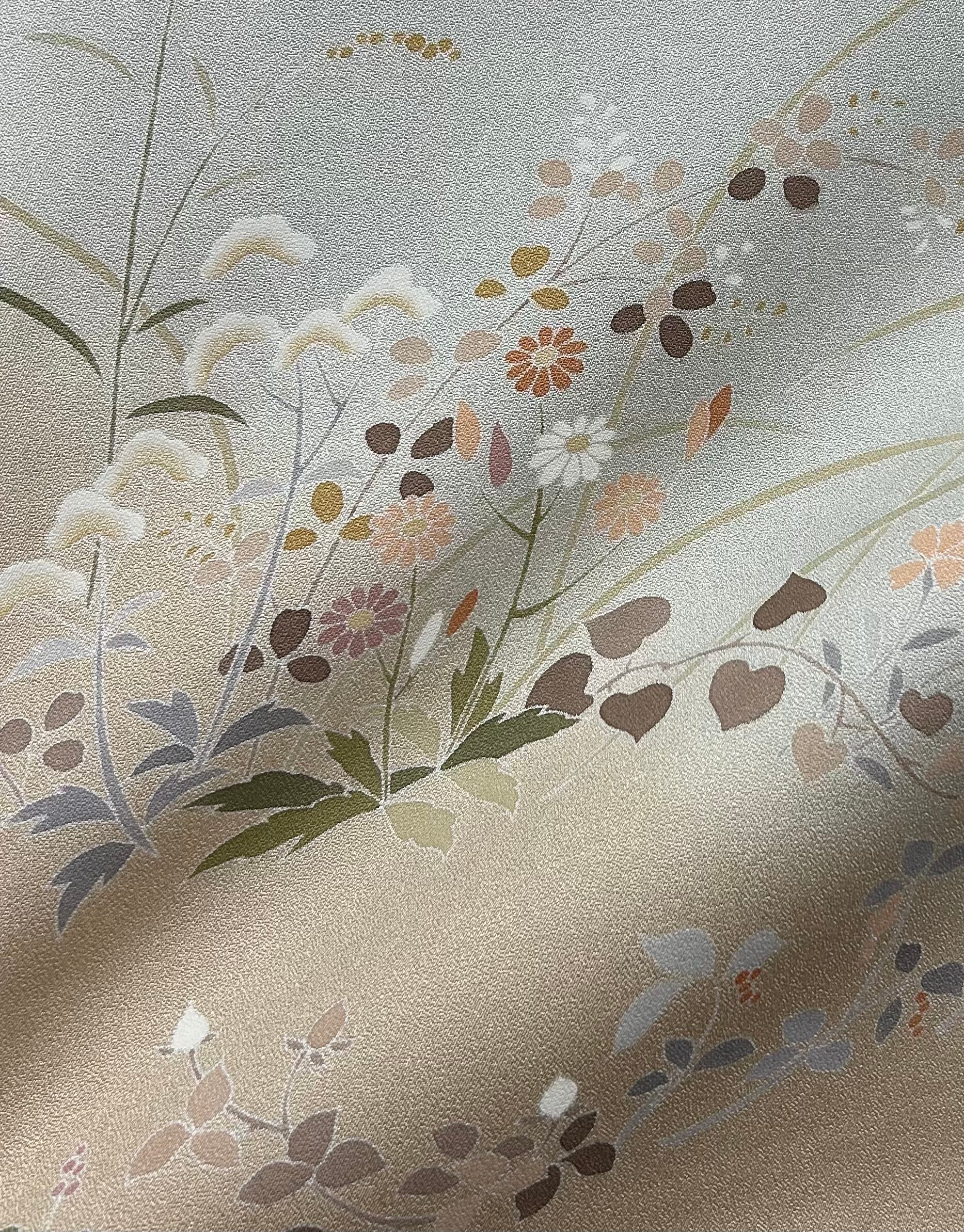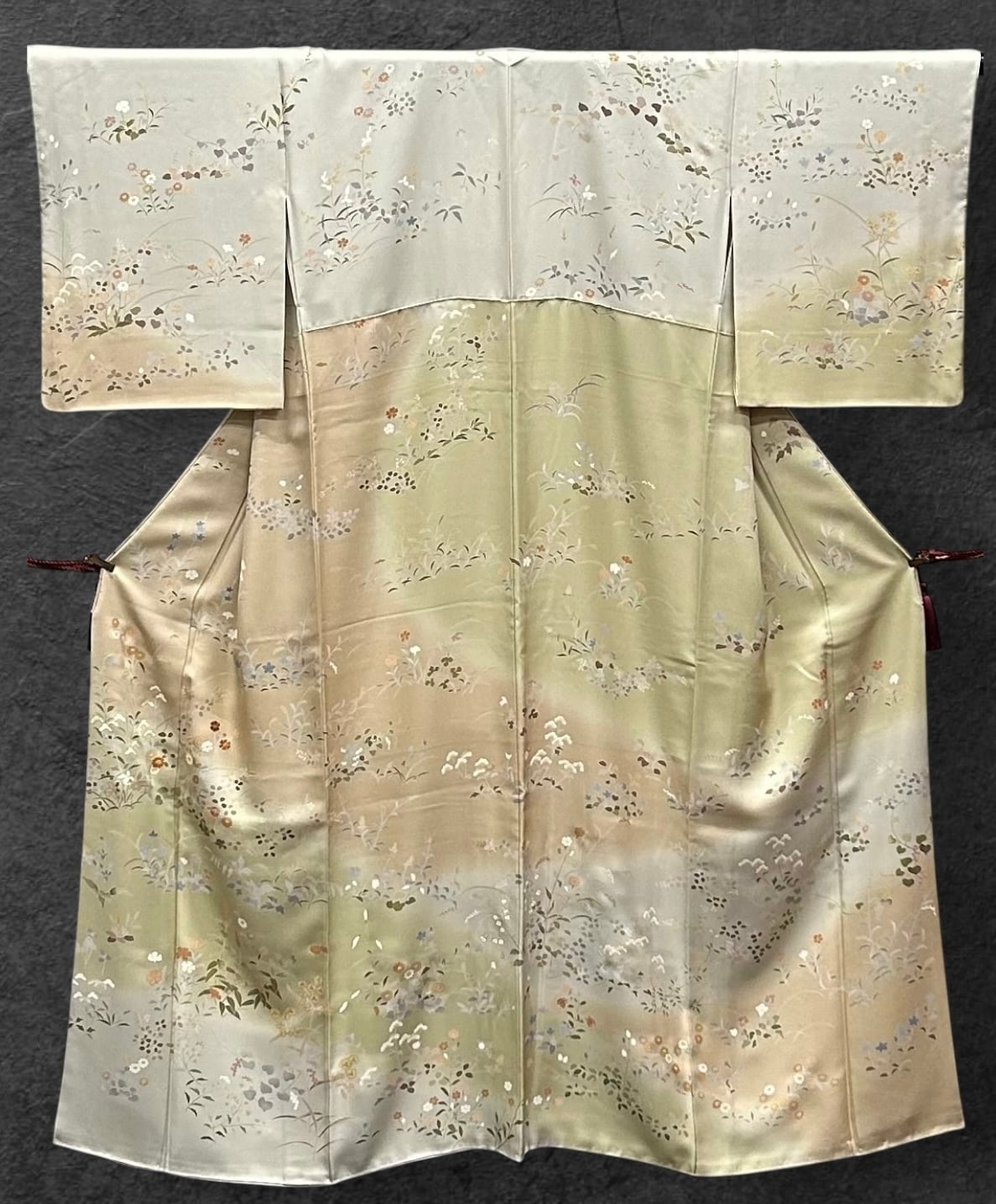付下げ小紋 穏やかな優しい多色づかいのお色味のぼかし 所々金色に囲まれた上品な草花 ガード加工済み 裄丈 66㎝ K5914