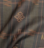 こちらは黒地に錆色、胡桃色、飴色などの茶系の線と琉球柄が特徴の紬です。しっかりとした厚みのある地は、着用することでさらに魅力を引き立てます。手触りのよい質感とデザインは、日常使いはもちろん、特別なシーンでも活躍することでしょう!