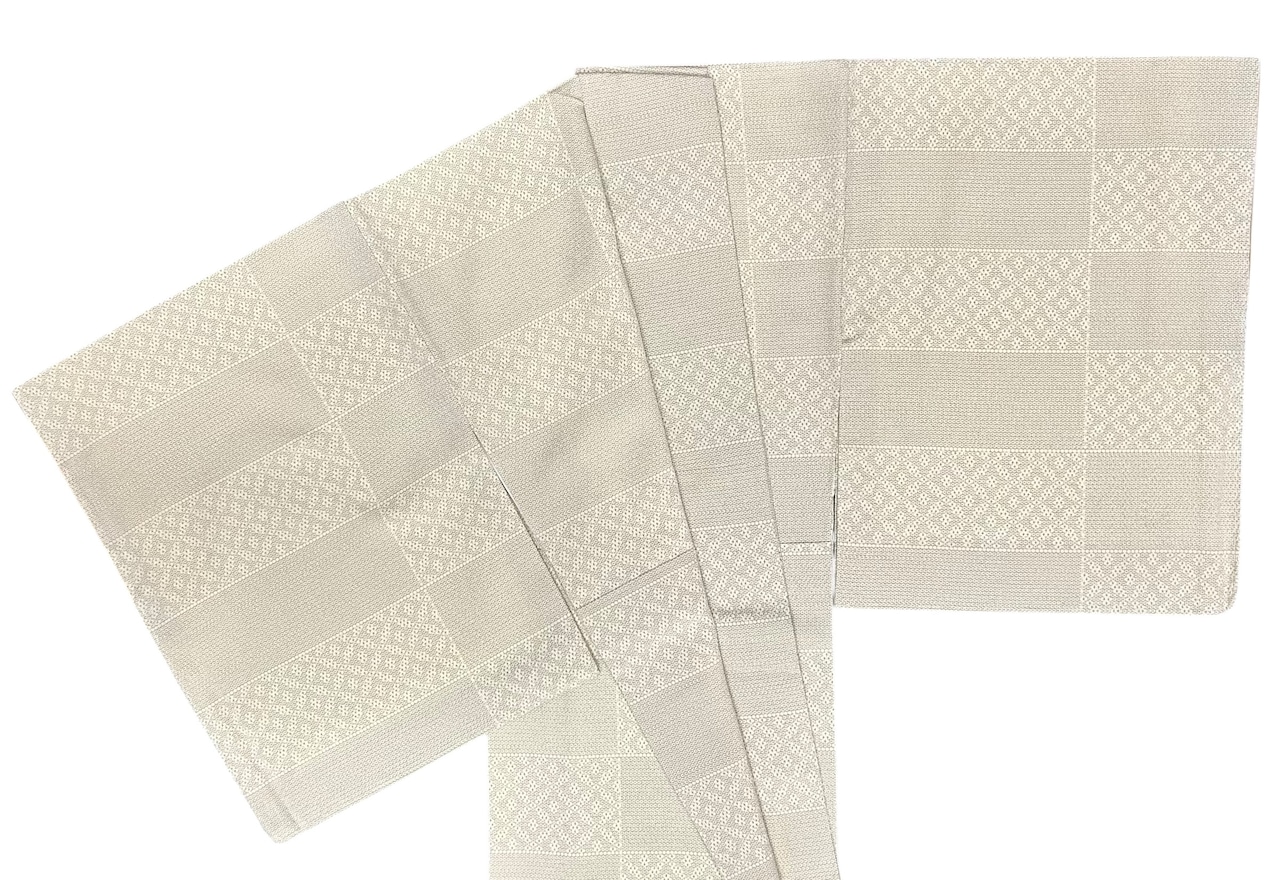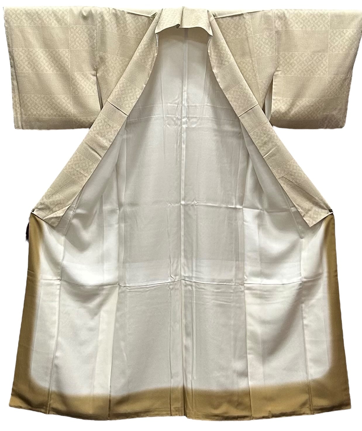 本塩沢 練色に薄墨色 きめ細かな亀甲絣 七宝柄 しつけ糸つき 裄丈 67㎝ K5721
