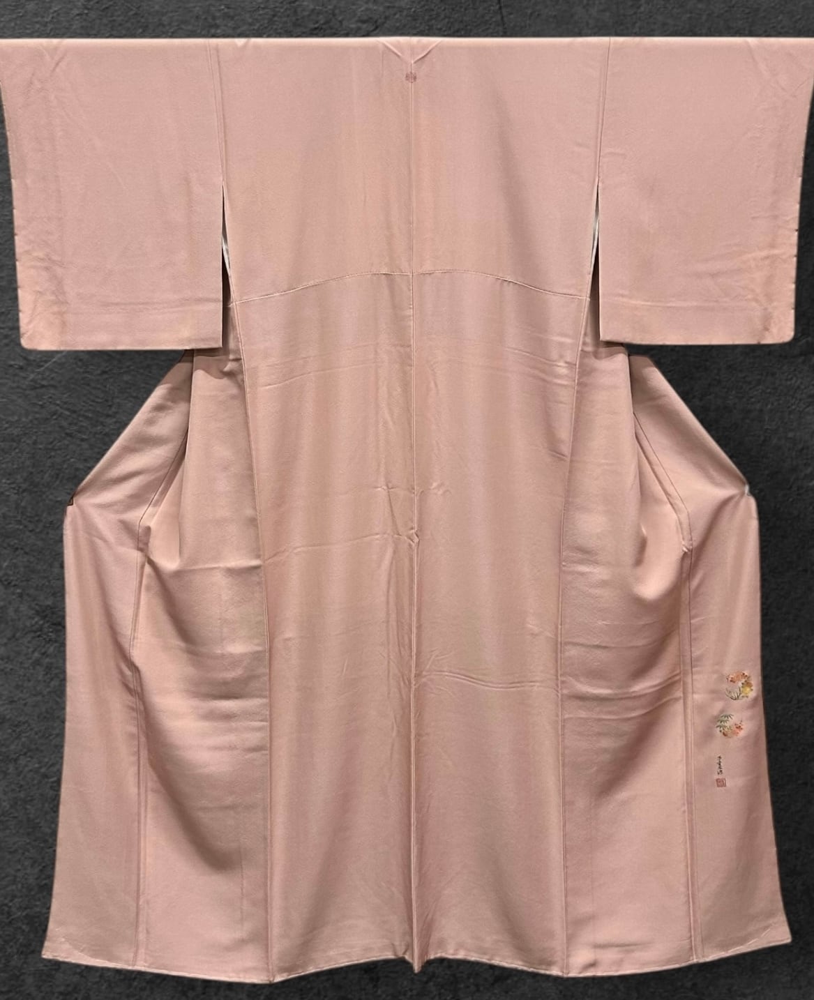 こちらは、鴇浅葱色の美しい色無地で、落款有の未使用品です。すべすべした肌触りが特徴で、心地よく体にフィットします。草木染めの自然な色合いは、どんなシーンでも優れた存在感を放ち、特別な日のお召し物にもぴったりです。