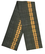 開き名古屋帯 紬地 板締め絞り 幻想的な濡羽色~橙色 長さ 368㎝ Q4947