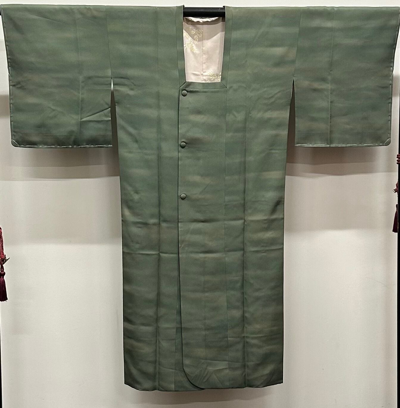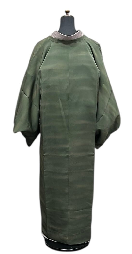 こちらは、岩井茶色からほんのりとした蘇芳色、海松色へと優雅に移り変わる暈しが美しい道行です。サラッとした肌触りが特徴で、上品な装いを引き立てます。落款が施されたこの道行は、特別なシーンにもぴったりの一品です。
