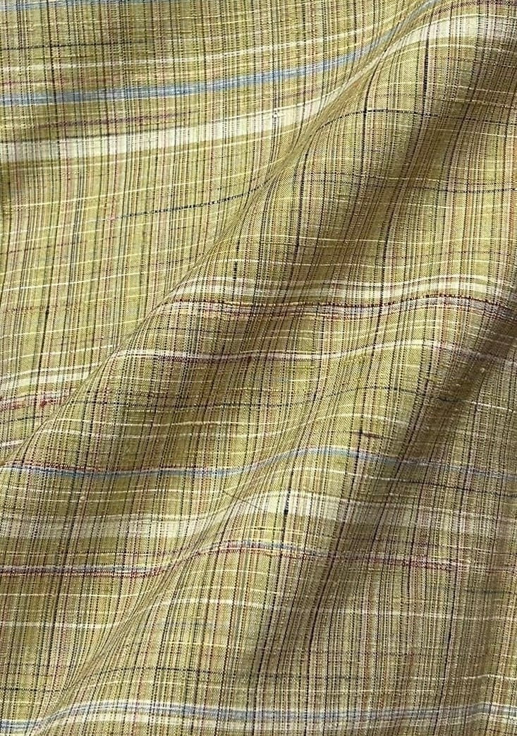 紬 ゑり善 ほっこりとした芥子色の地 茶系 緑系 水色 黒などの格子 しつけ糸つき 裄丈 64㎝ K5628