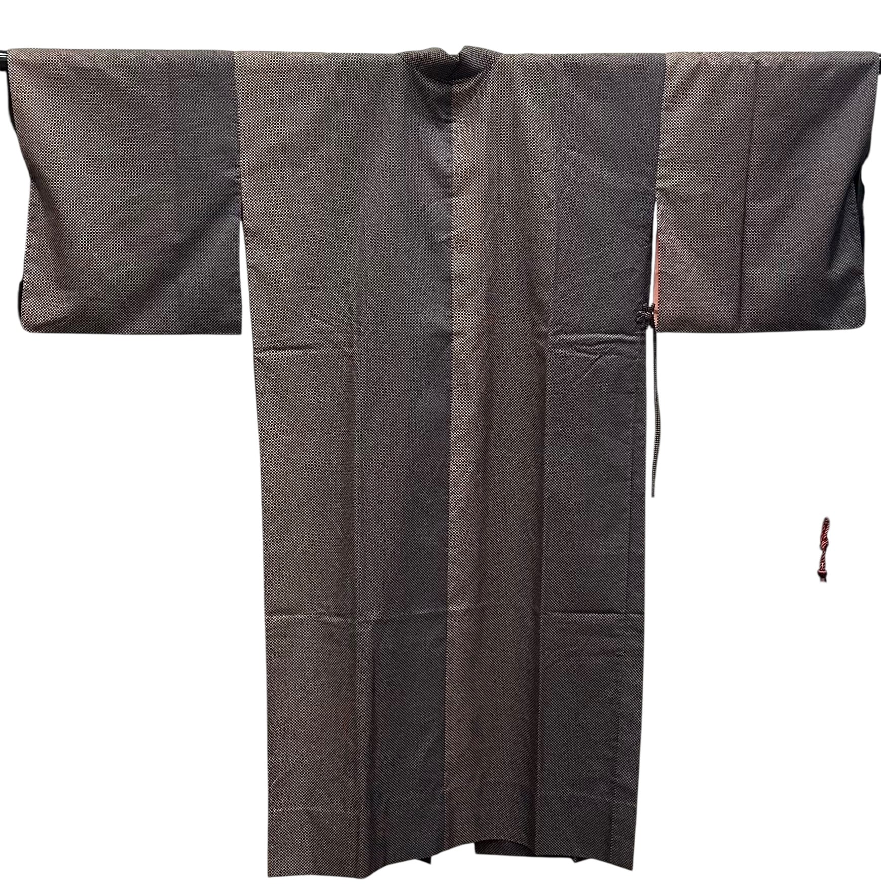 道中着 ゆったりサイズ 薄手 単衣仕立て やまと 黒地 伽羅色の細かい点の大小 ゆったりサイズ 裄丈 73.5㎝ K6188