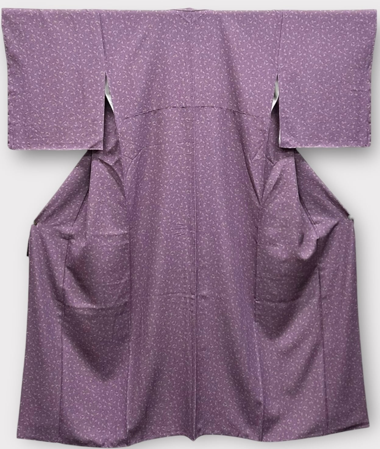 江戸小紋 二藍色の地 植物の実と葉のお柄 お洒落な八掛 一部しつけ糸つき 裄丈 67㎝ K5773