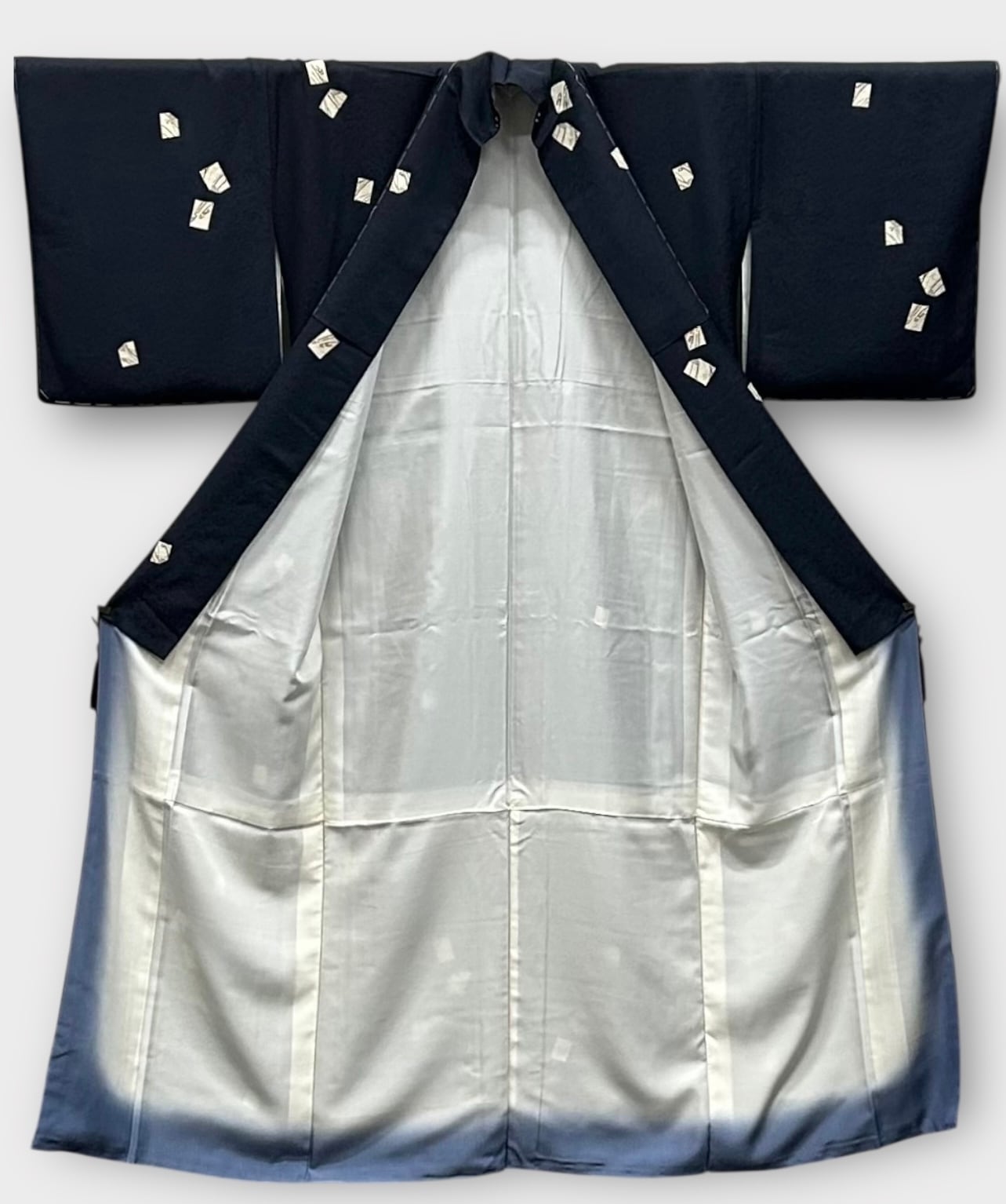 小紋 西武百貨店 藍鉄色の地 上品な色紙柄のような飛び柄 しつけ糸つき 裄丈 70㎝ K6248