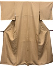 こちらは、江戸小紋の上品な伽羅色のお着物です!鮫小紋の繊細な模様が全体を引き締め、落ち着きと華やかさを両立させています。しつけ糸もつき、さらりとした肌触りが特徴で、心地よい着心地を実感していただけることでしょう。どんなシーンでも活躍できる使い勝手の良い一品です。
