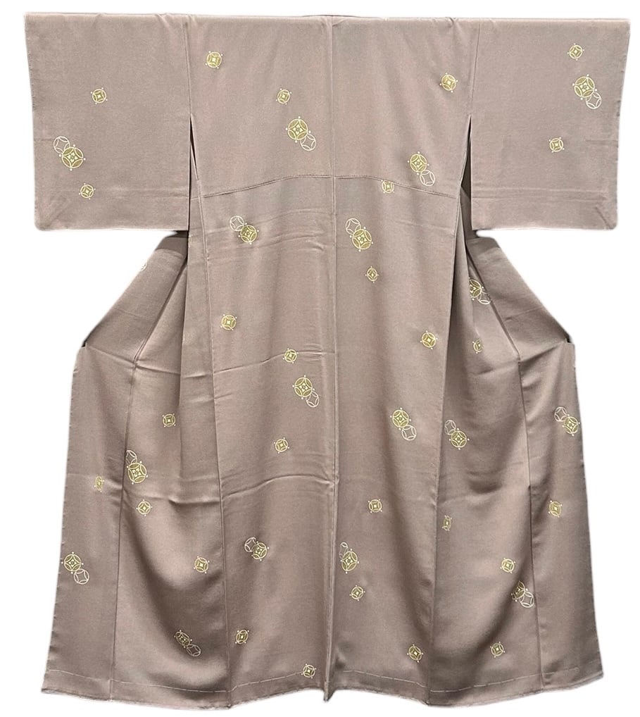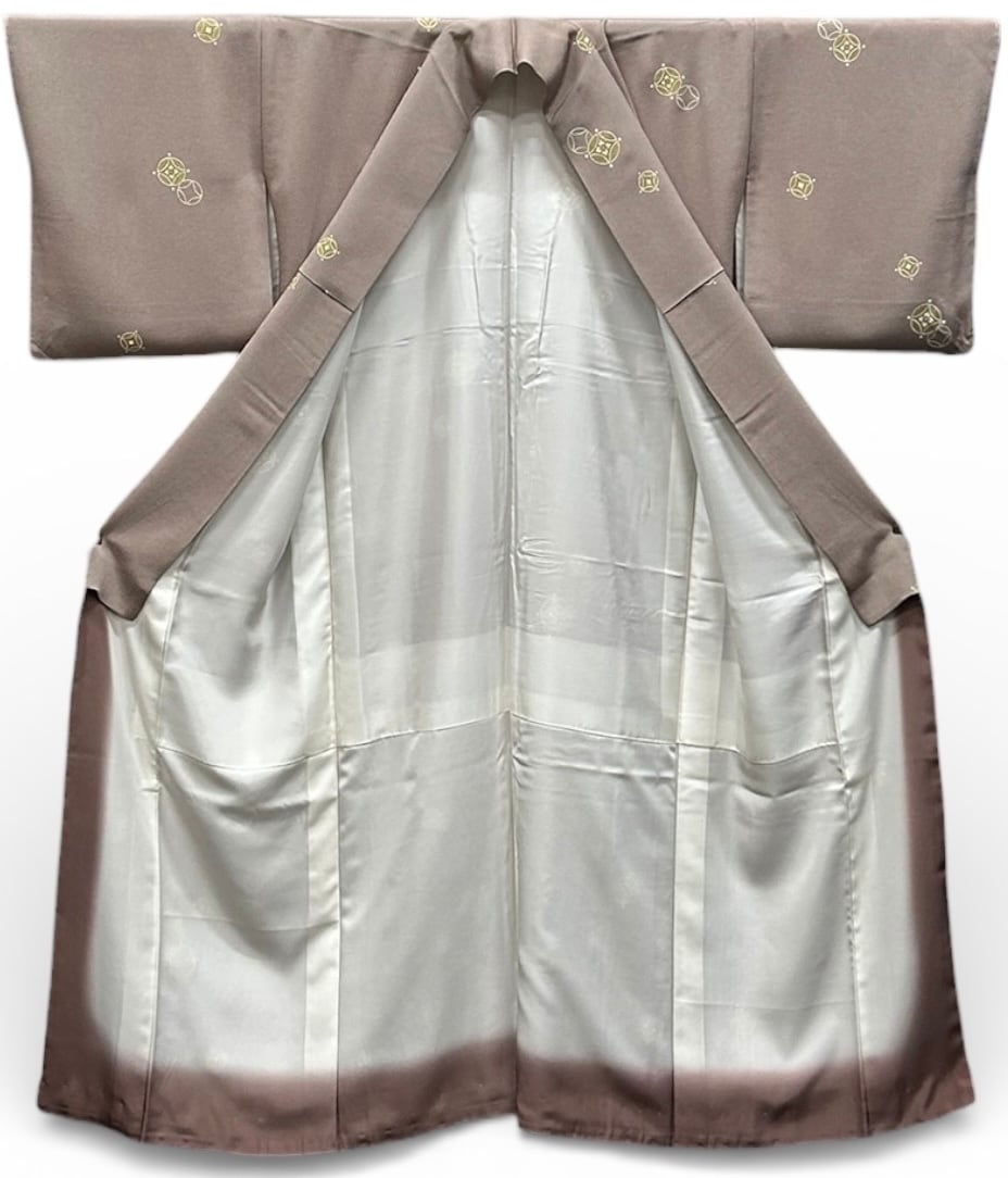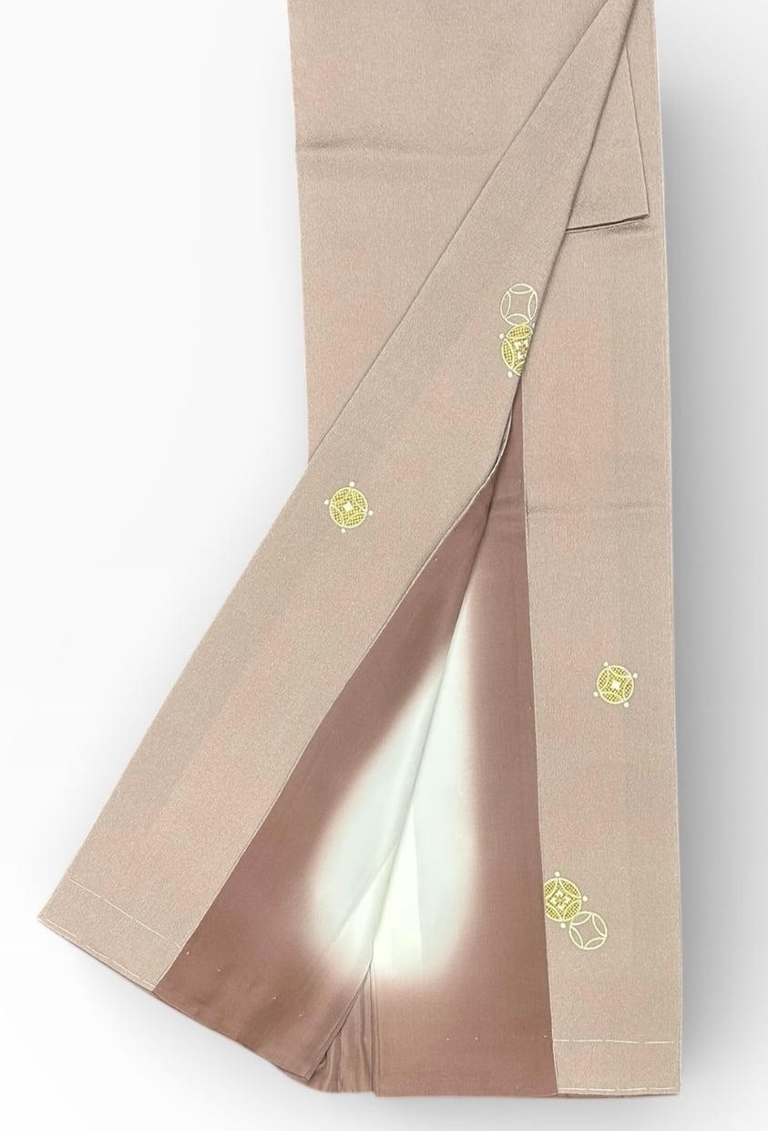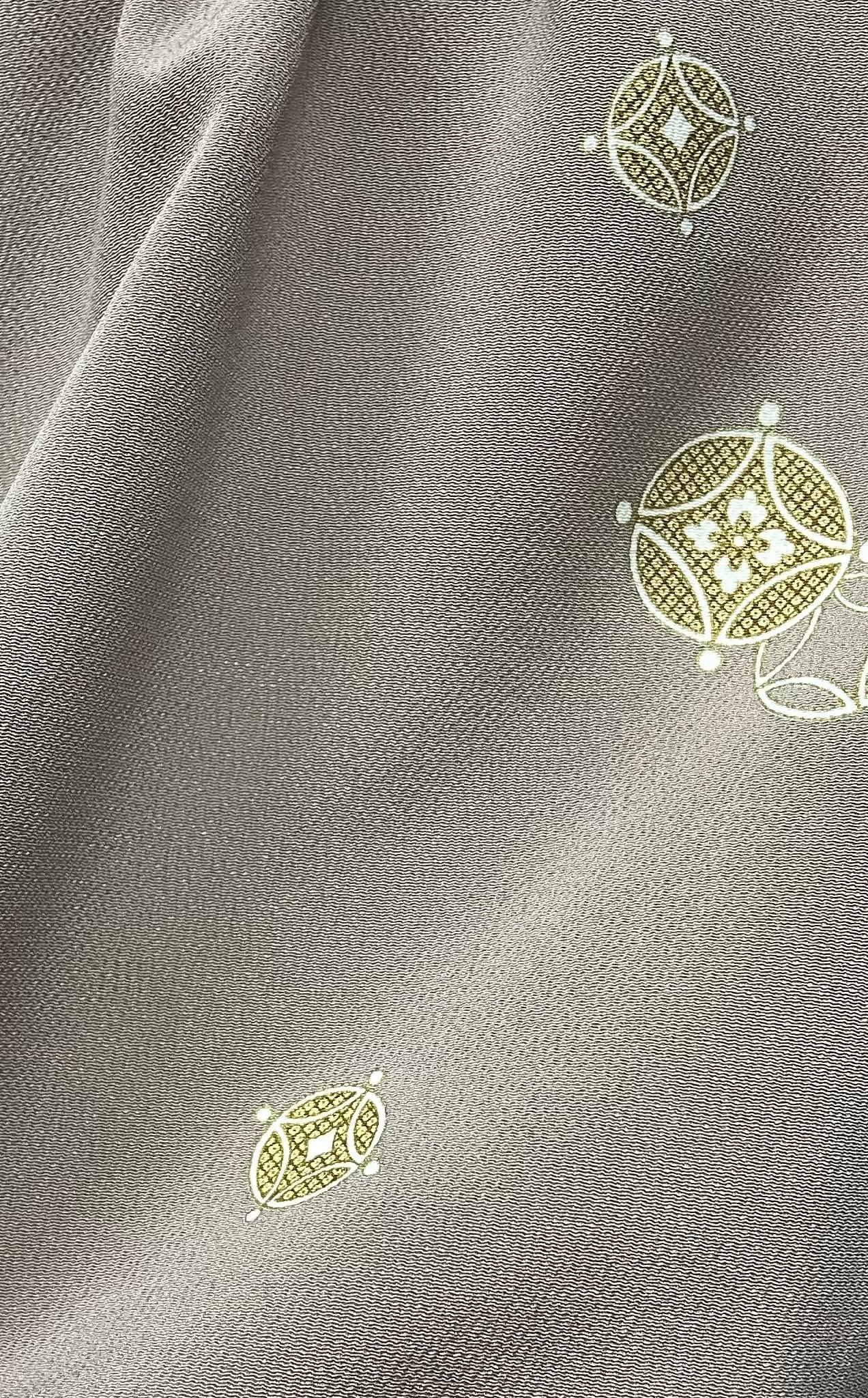 小紋 三越 未使用品 ちりめん地 薄めの梅染色の地 上品な七宝文様 裄丈 69㎝ K6250
