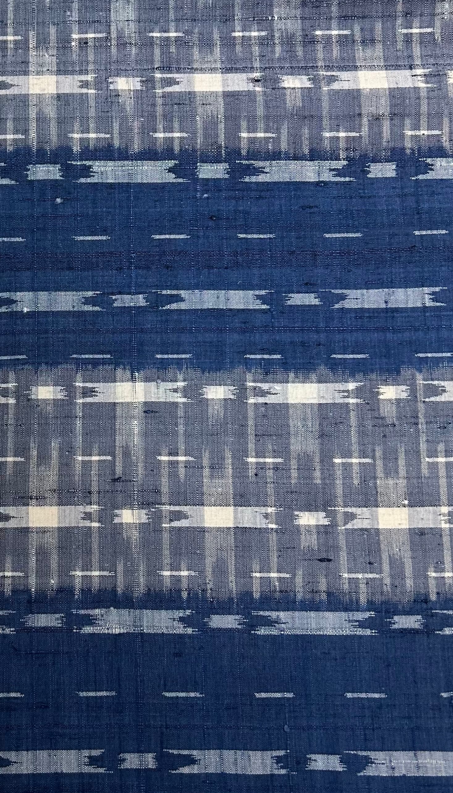 青藍色と藍鼠色の織りの暈しごとても素敵な工芸的な名古屋帯です。
