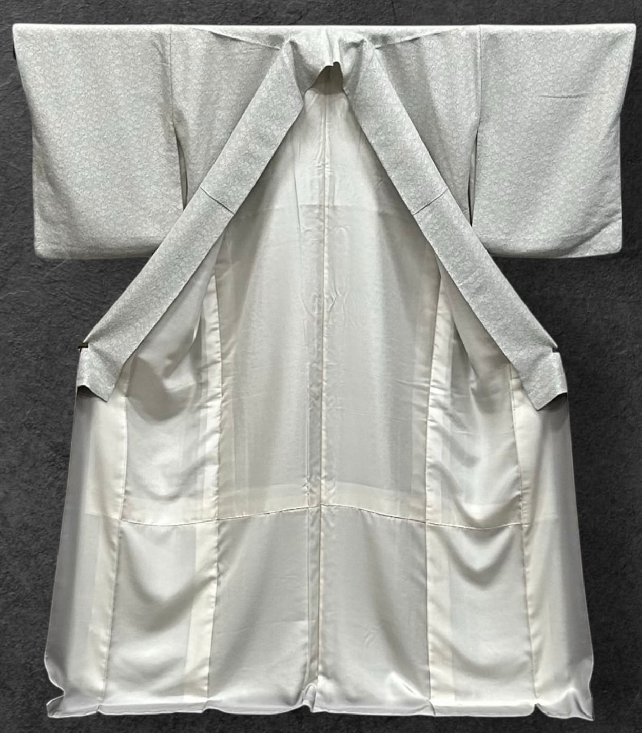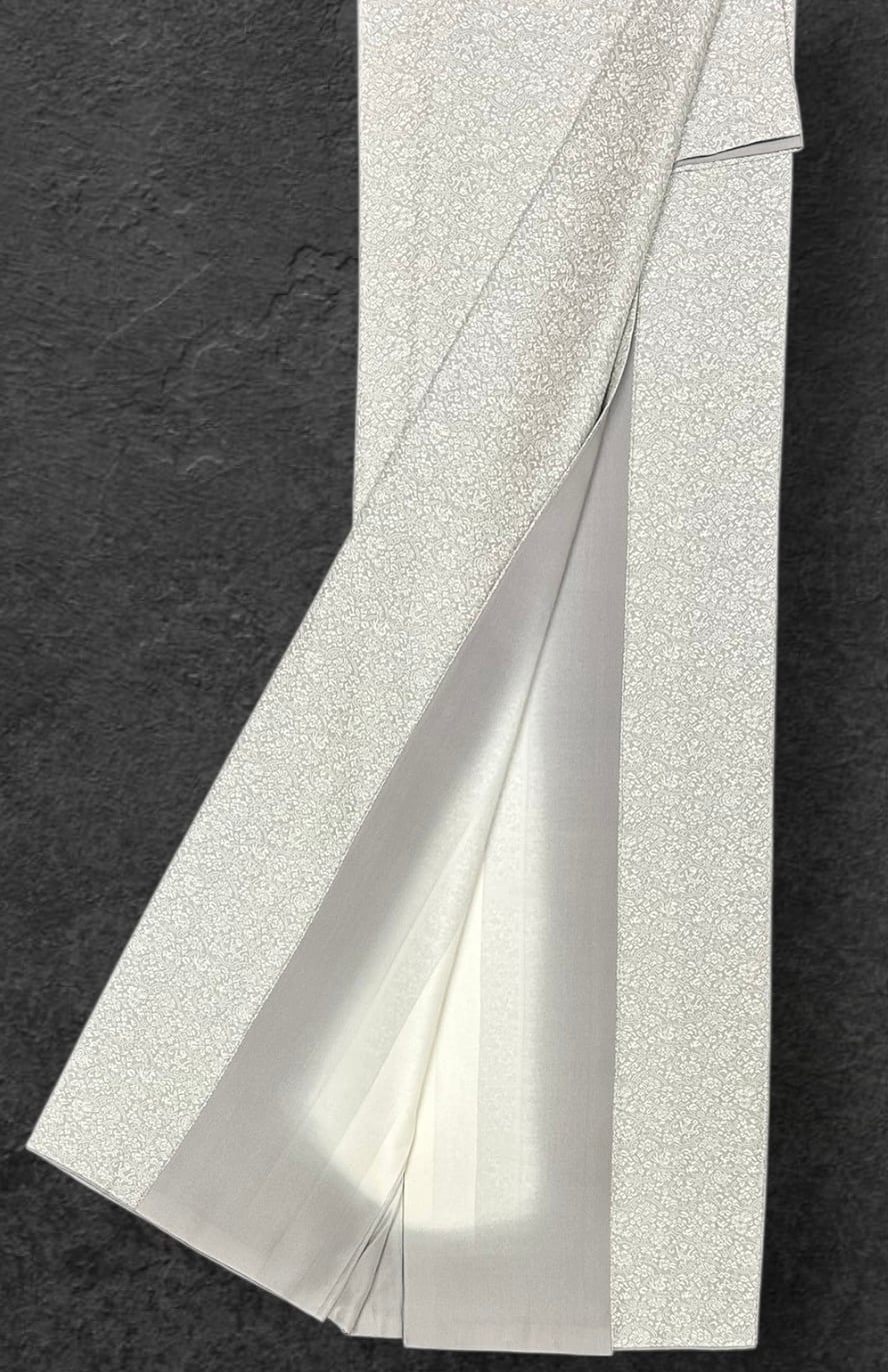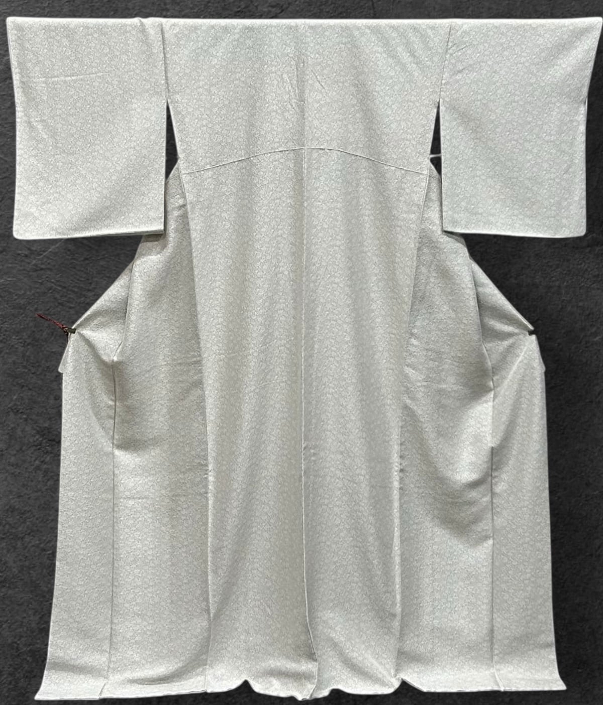 お召し 蕎麦切り色の地 白の上品な花唐草模様 トールサイズ 裄丈 72㎝ K3245