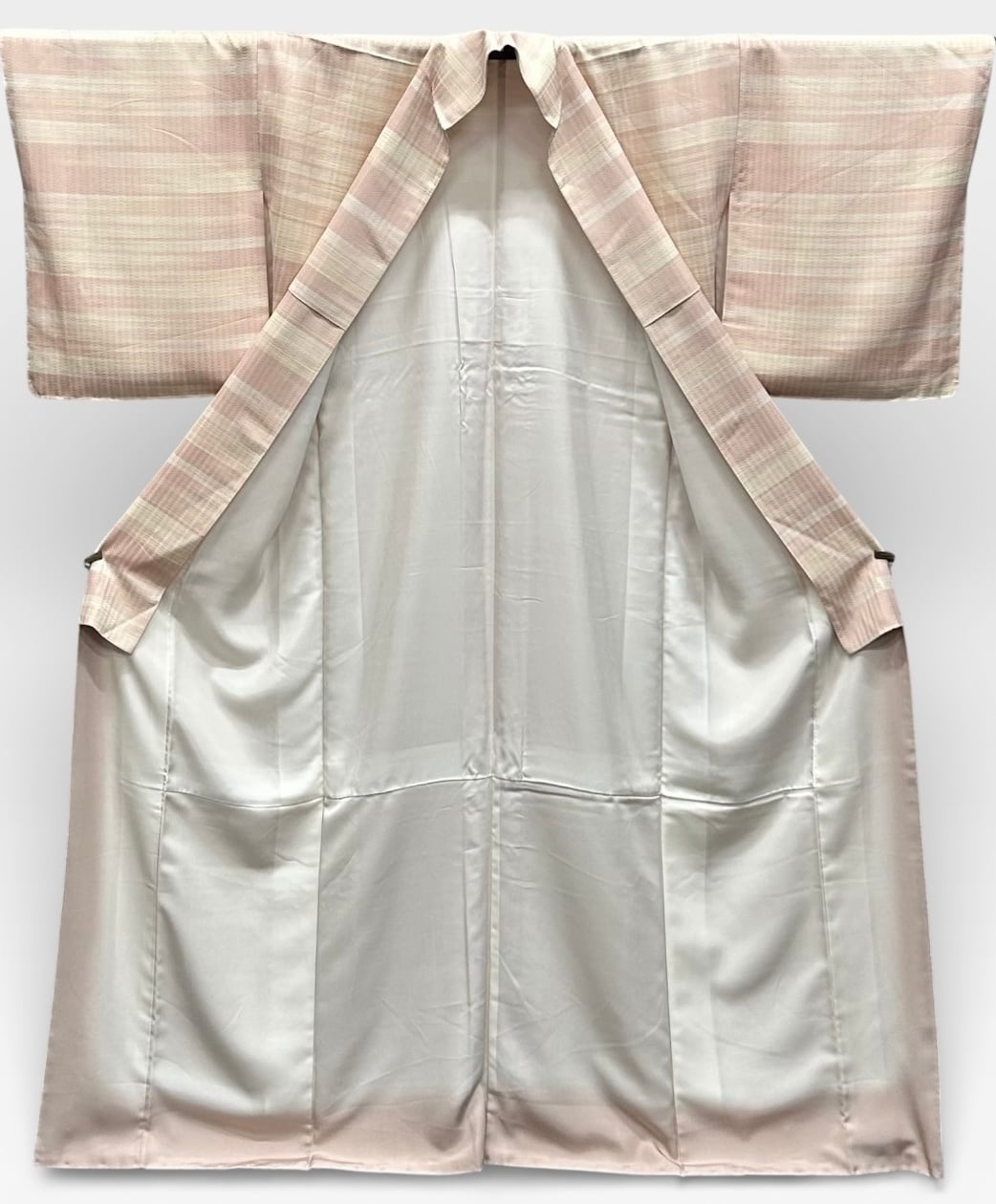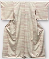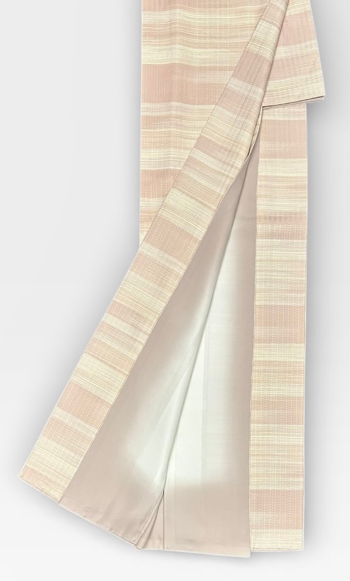 小紋 水柿色~洗柿色~薄卵色の横段 裄丈 69㎝ K6352