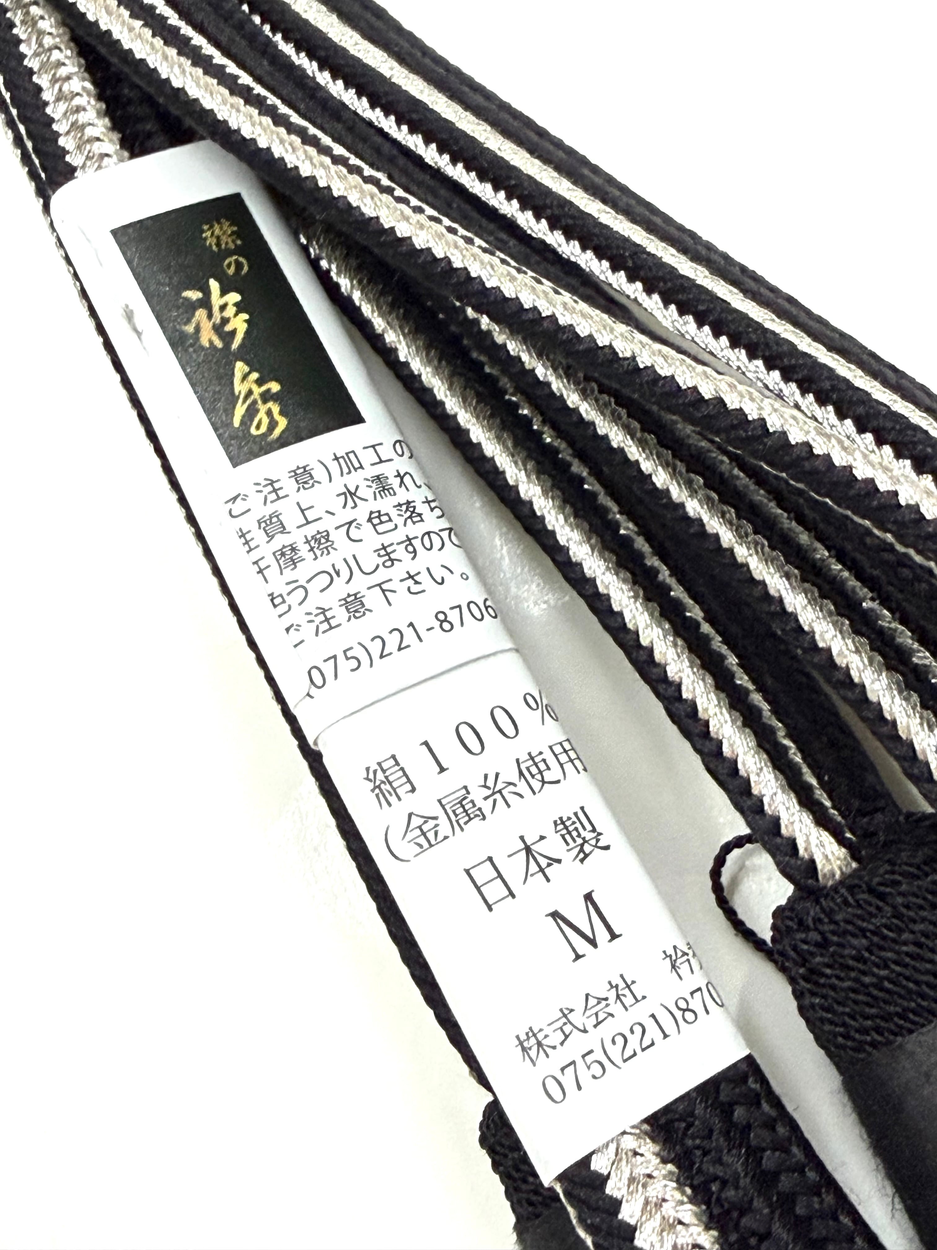 帯締め 衿秀製 正絹 黒銀 未使用品