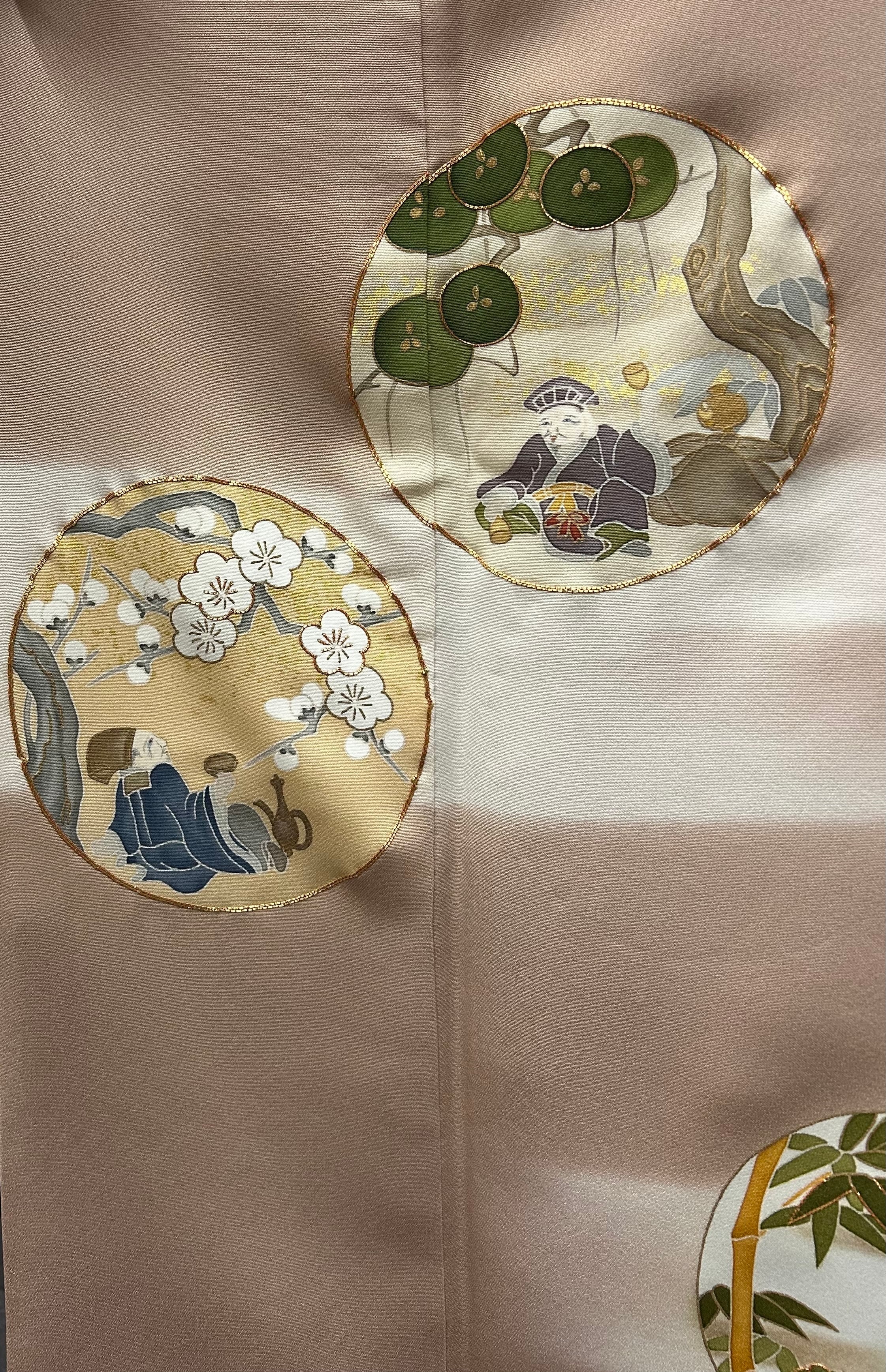 色留袖 伽羅色の地 七福神 所々金駒刺繡 洒落紋(刺繍)つき しつけ糸つき 裄丈 70㎝ K5703
