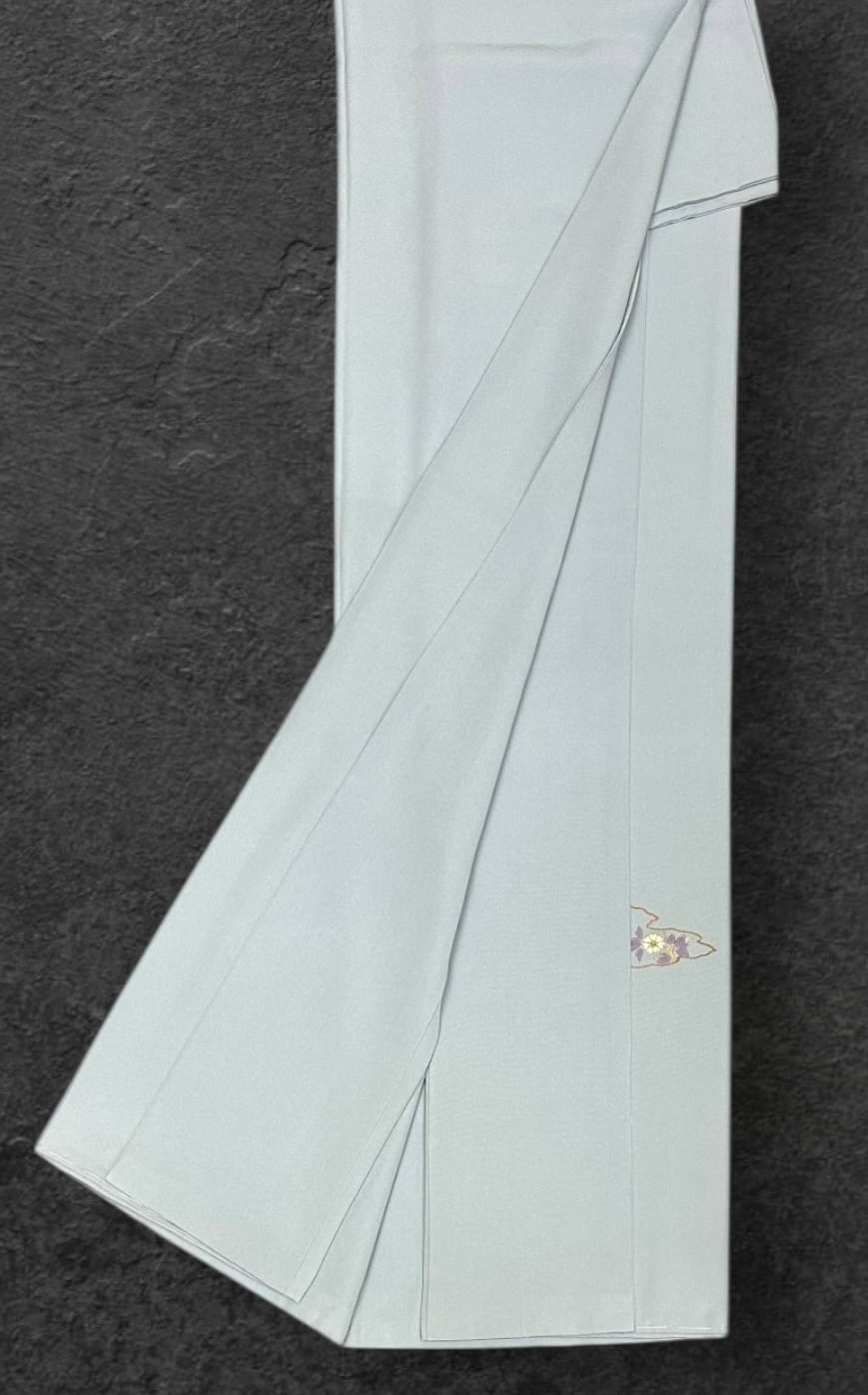 付下げ くすんだ秘色色 刺繍 しつけ糸有 裄丈 67㎝ K6482