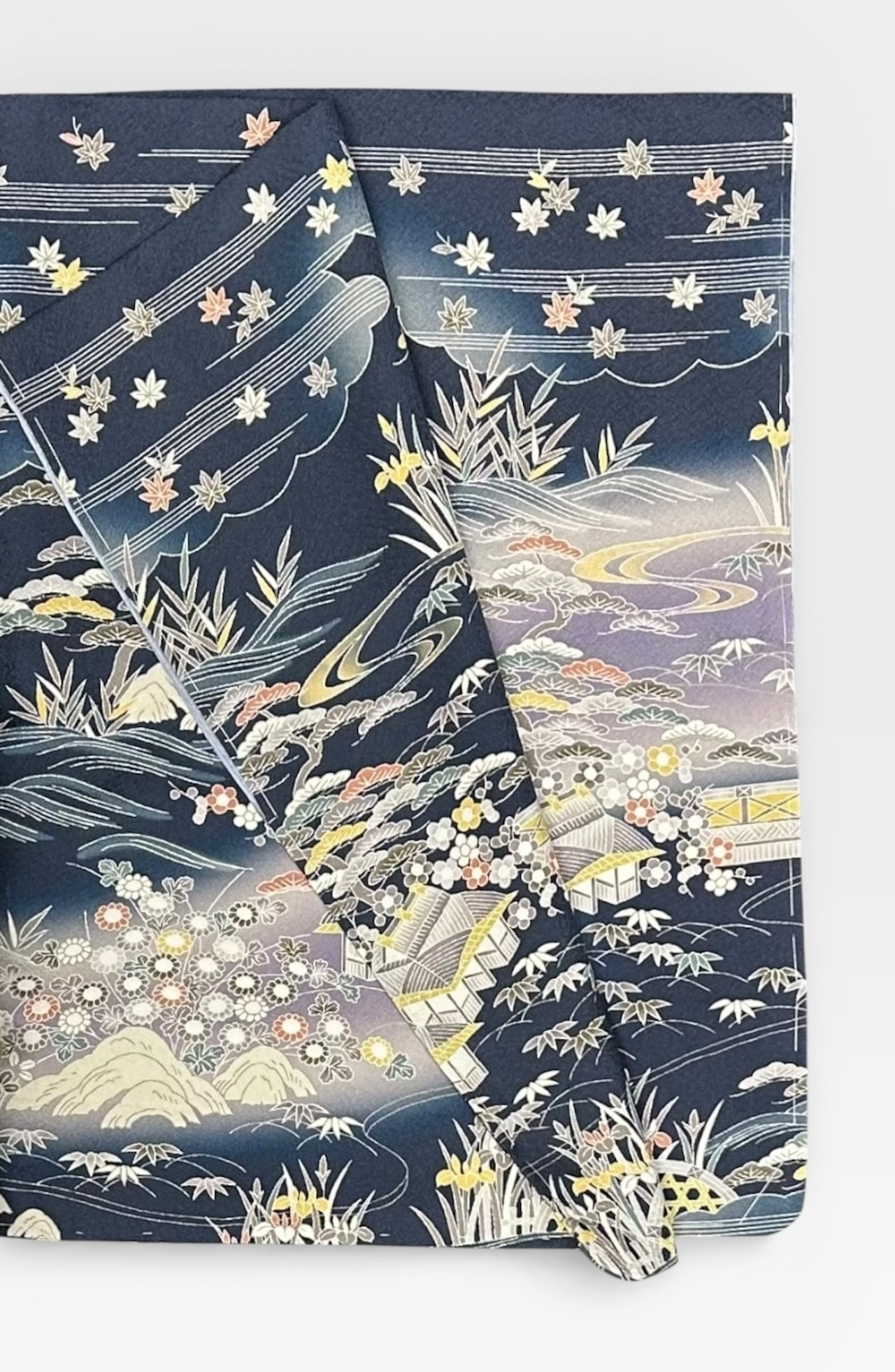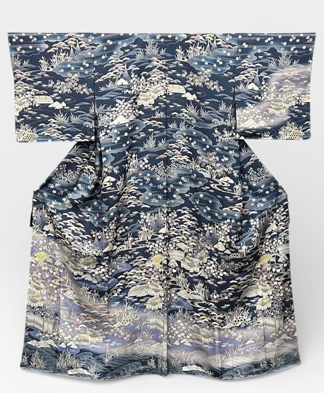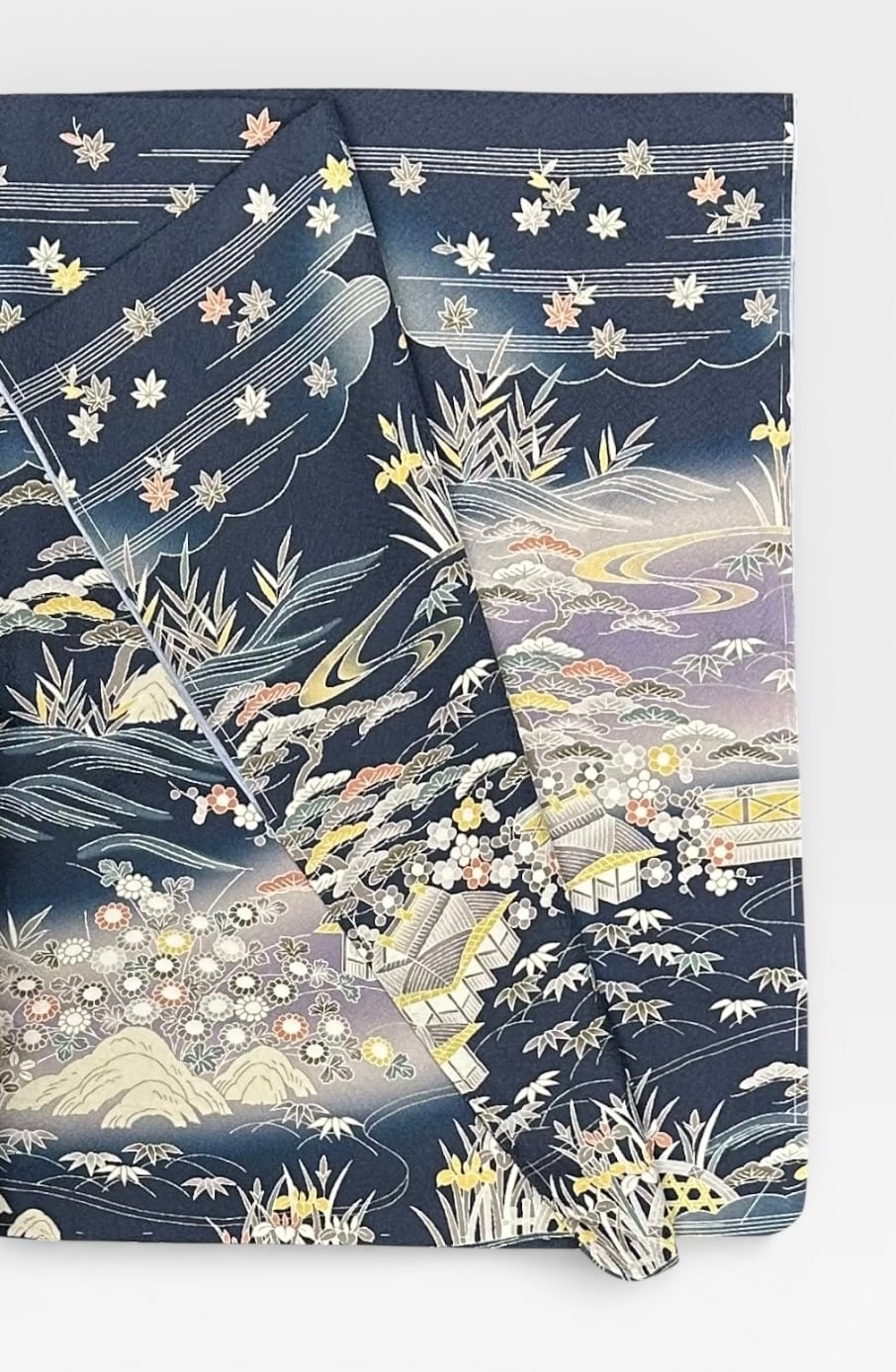 付下げ 上品な茶屋辻文様 青みのある鉄御納戸色など 裄丈 65.5㎝ K4936