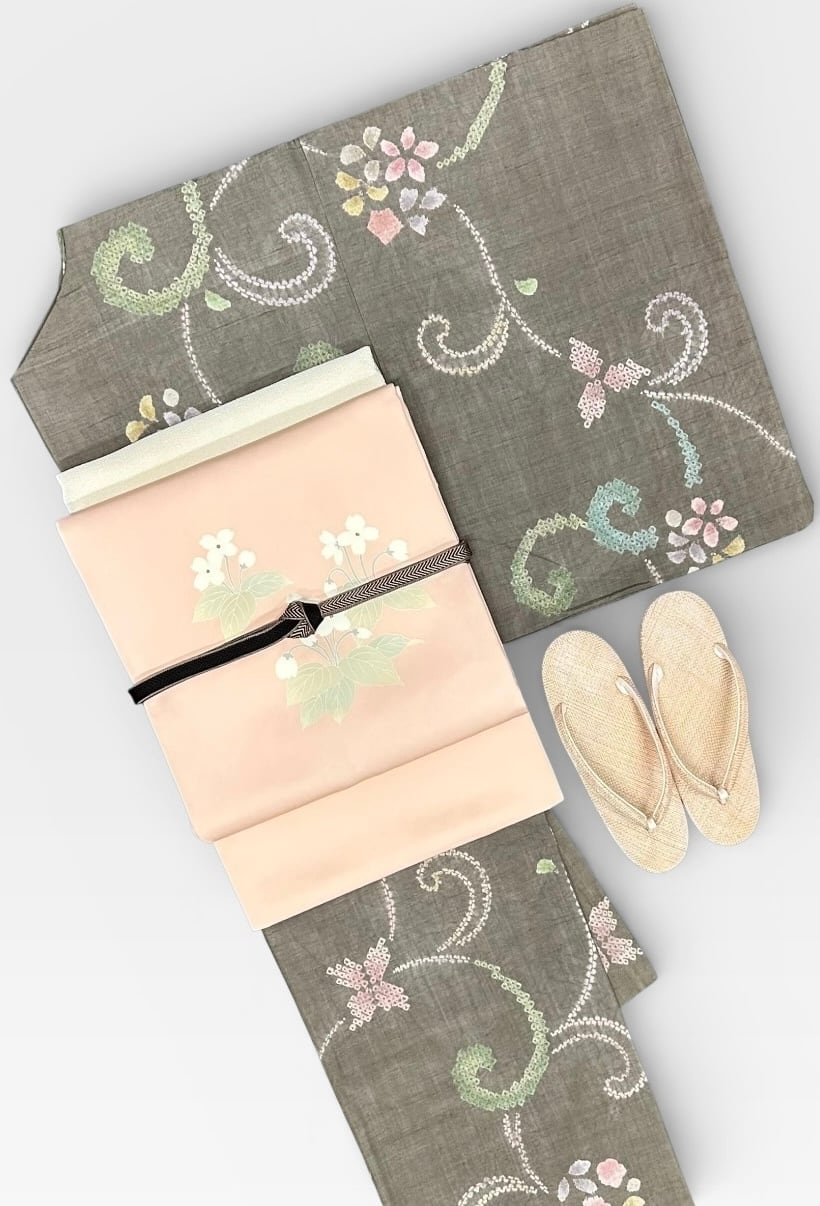 風情溢れる紬のお着物です。ふんわりとした江戸鼠色の地に、絞りで施された草花文様が優雅に映えます。薄青色や鴇浅葱色、薄鼠色などの可愛らしい柄が、着用するシーンを華やかに彩ります。やわらかくサラッとした肌触りが特長で、三越お誂えの特別な逸品です。