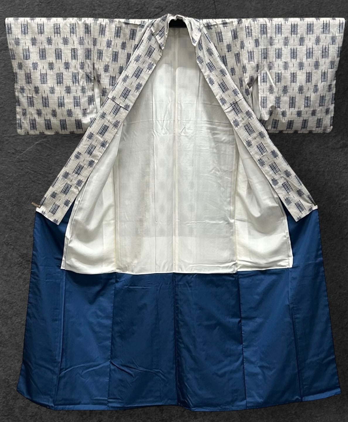 真綿紬 灰色がかった絹鼠色×藍 絣模様 裄丈 67㎝ K6546