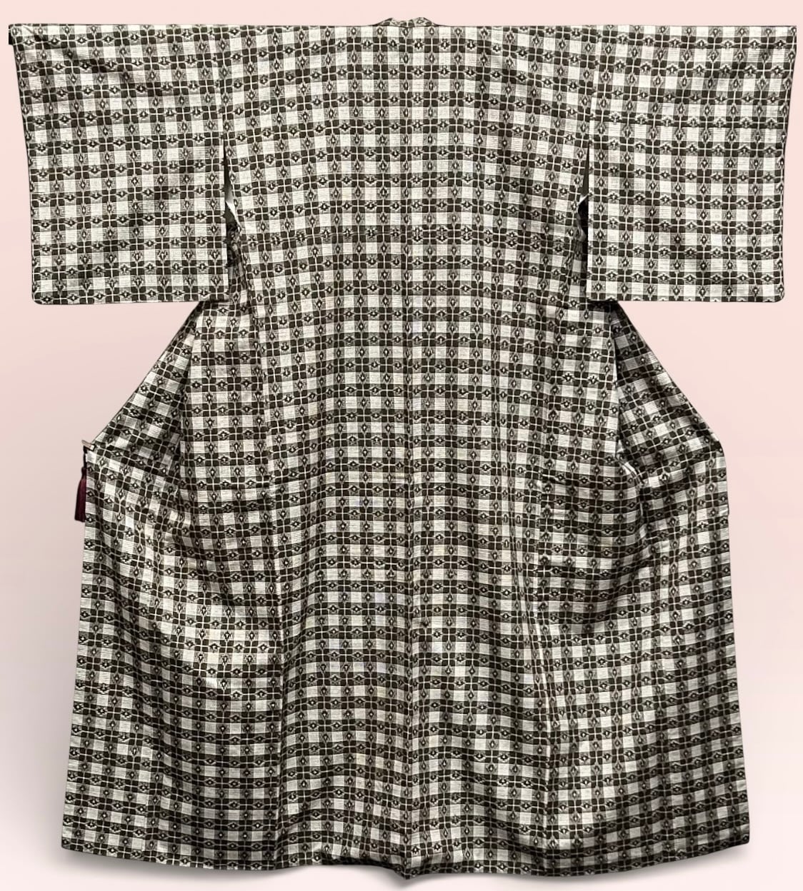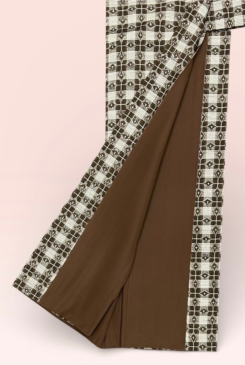 紬 憲法色×檳榔子染色×素色 格子柄 裄丈 67.5㎝ K6290