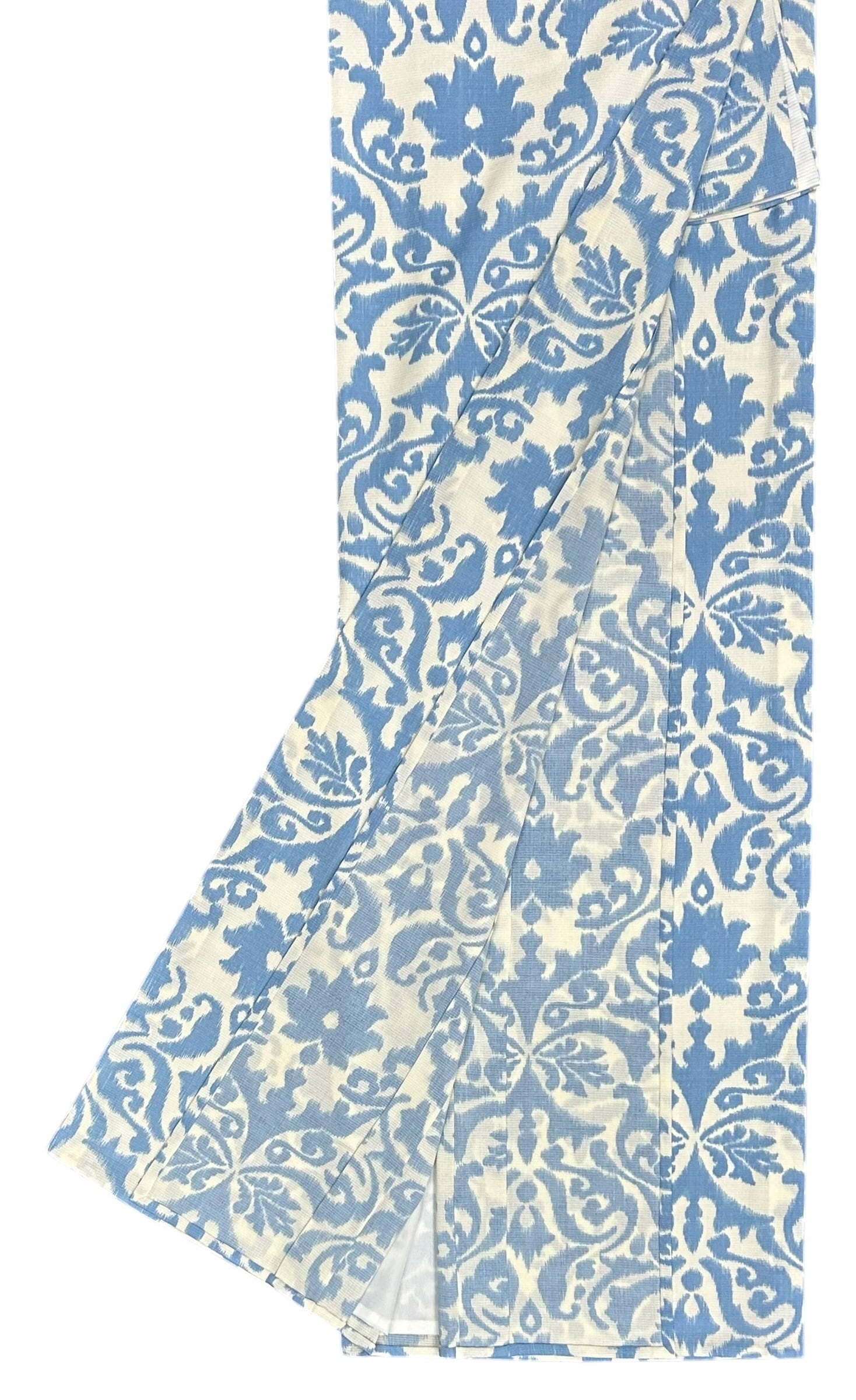 胡粉色に地に明るい薄縹色の大胆に広がる大きめの唐花模様が特徴のこの単衣小紋は、ポリエステル素材のため、軽やかさと柔らかさを兼ね備えている、日常使いにもぴったりな華やかなデザインです。