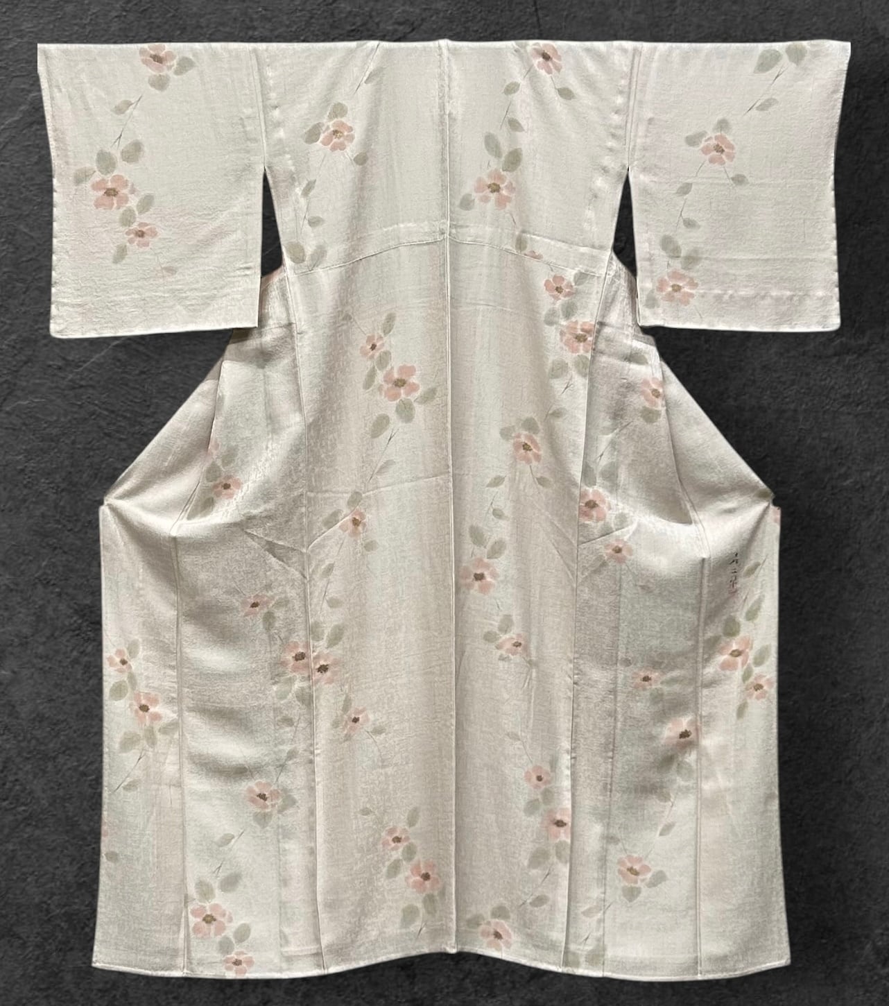 単衣 二代目清次郎 極々うすい一斤染色の地 上品な草花の柄 裄丈 66.5㎝ K4026