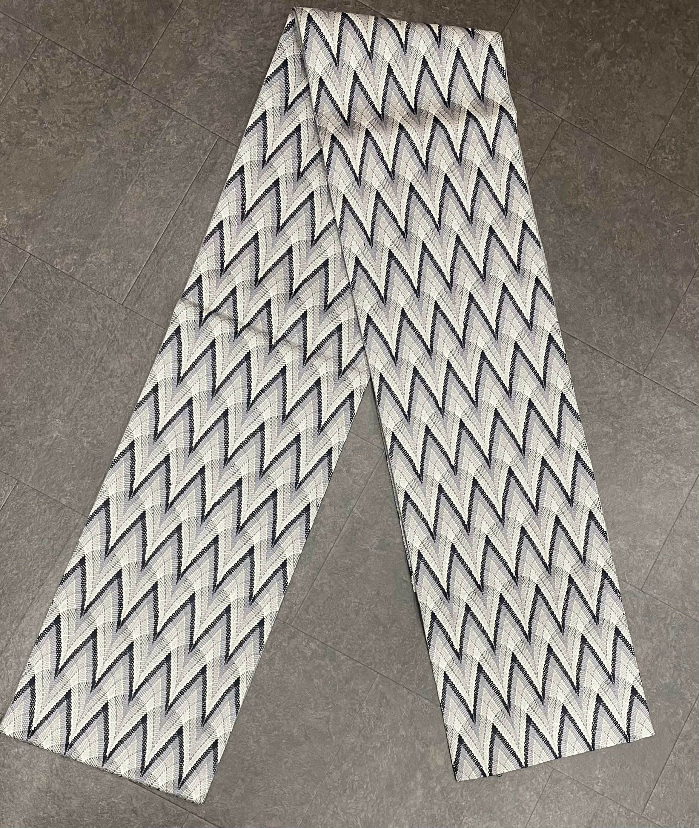 濃藍、鉛色~白鼠幾何学模様グラデーションの洒落袋帯です。