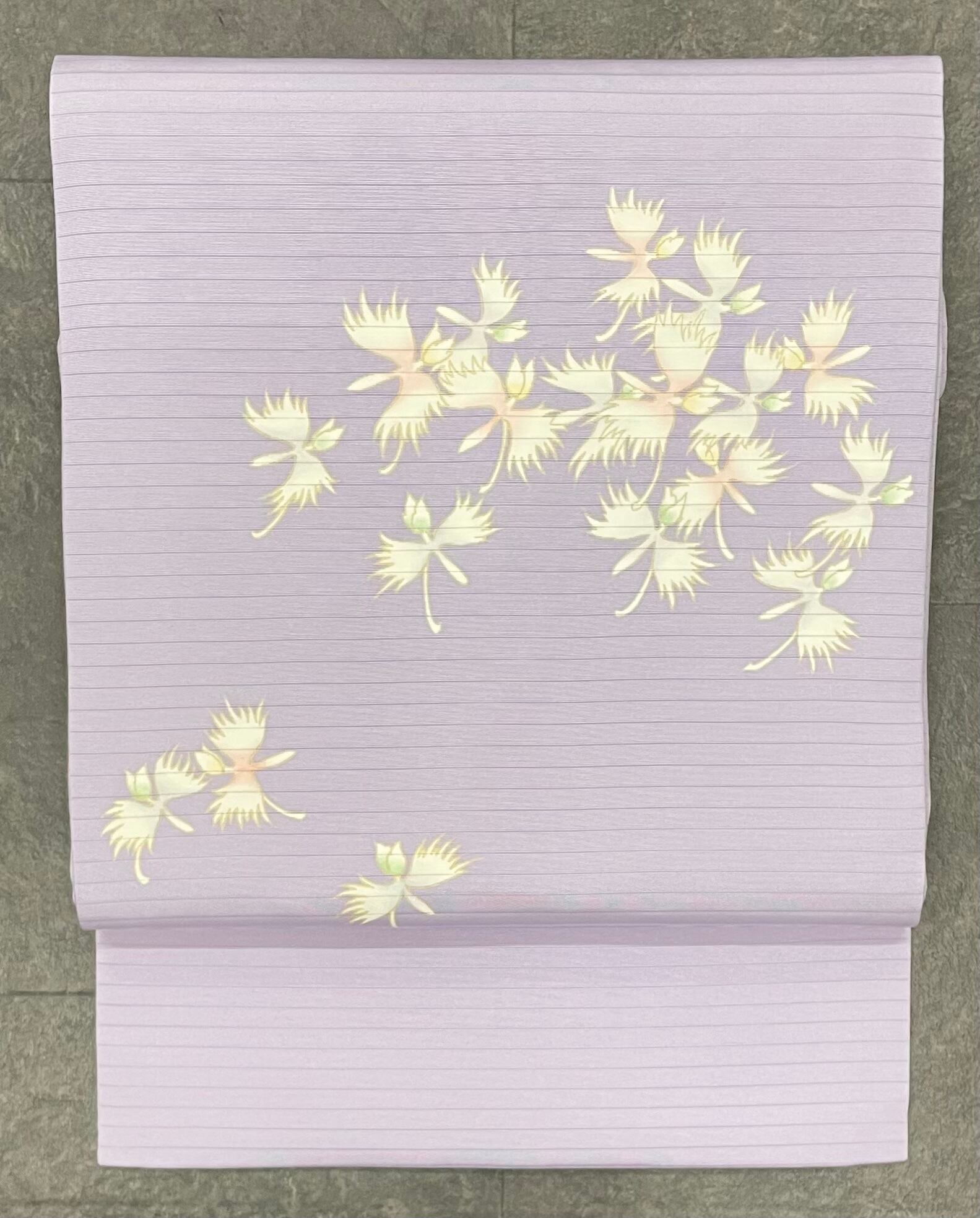 浅紫色の絽の名古屋帯です。お仕立て上がりの新品です。