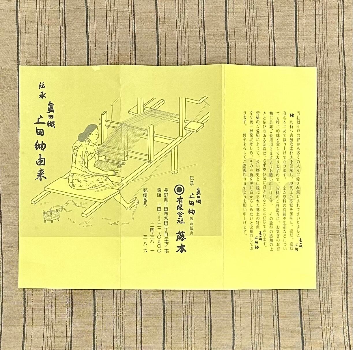 丁子色×灰色 灰色の縞、堅牢さと雅味の独特の風合いが素敵な真田織上田紬、仕付け糸付いています。