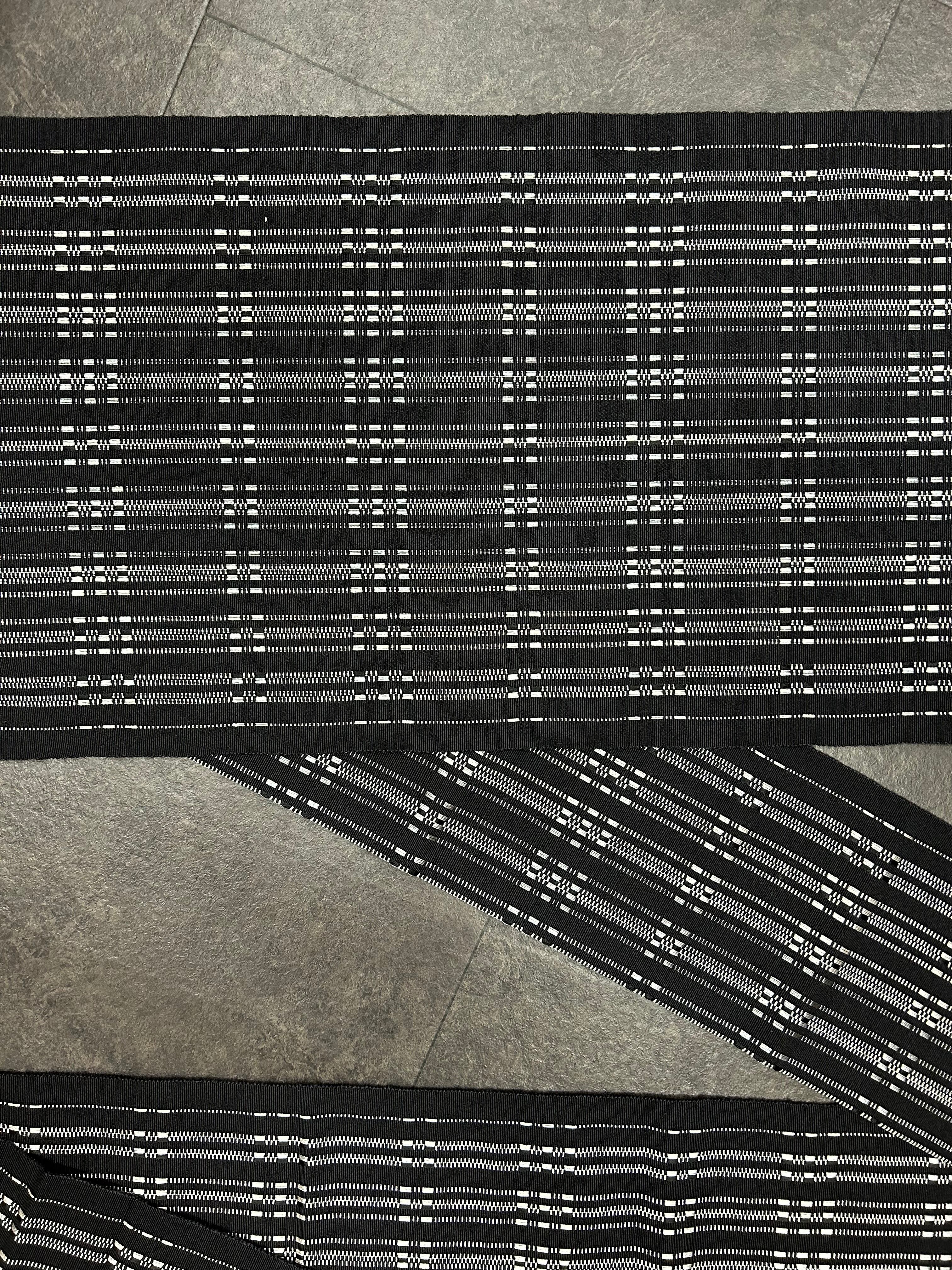 名古屋帯 黒地に縦縞 長さ 361㎝ Q3319