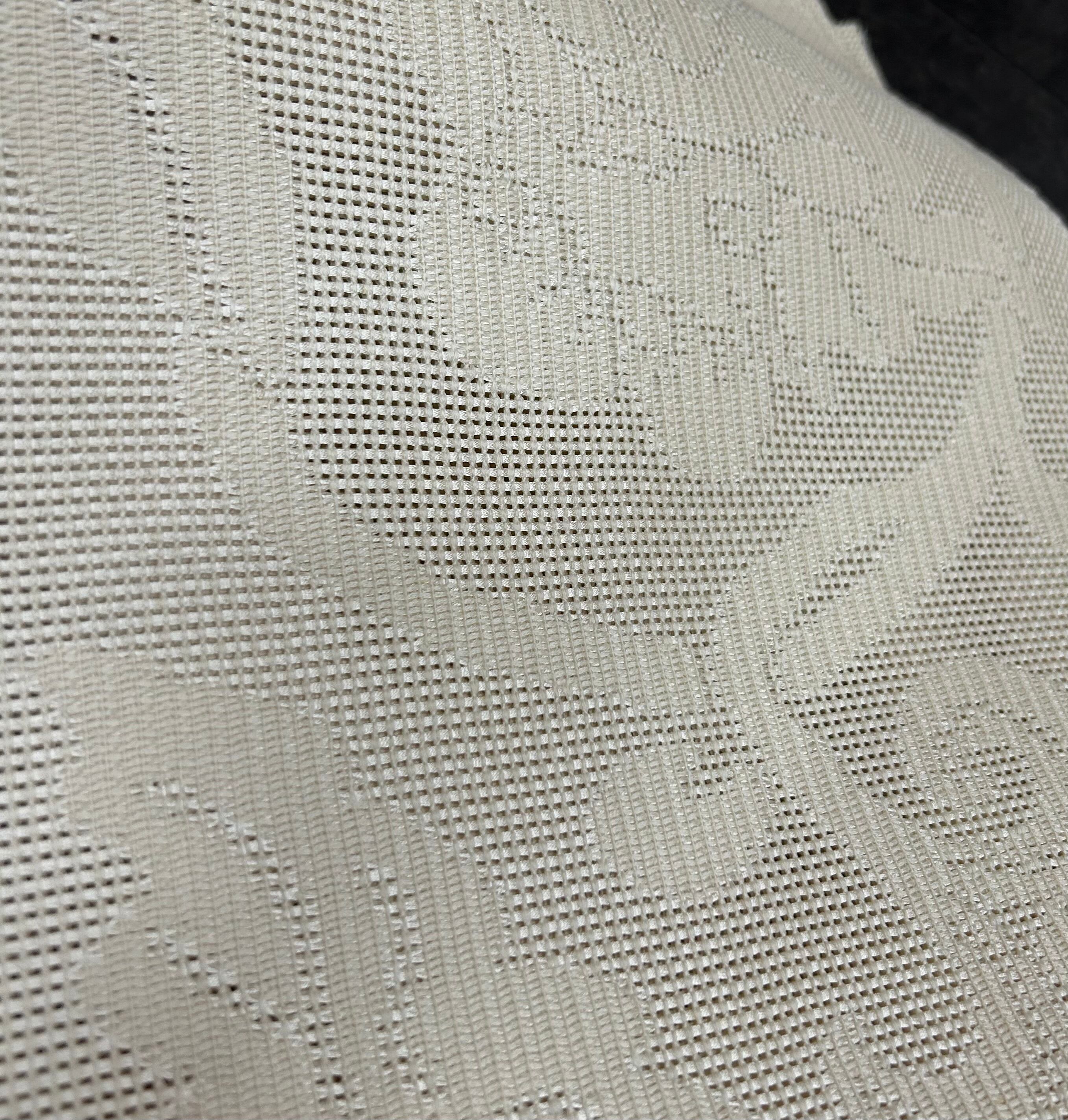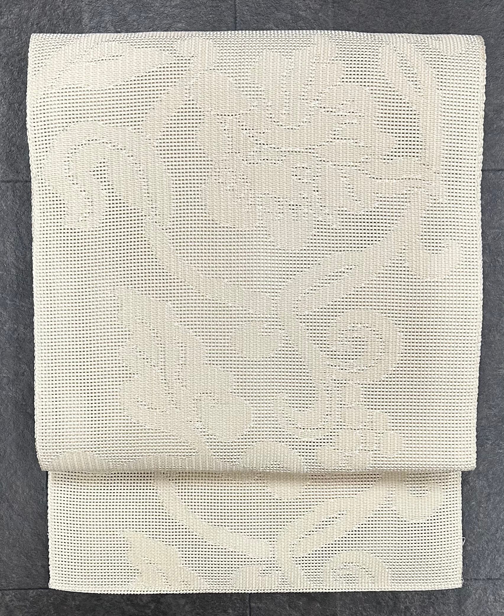 浅黄色の地に、同じ色で葡萄唐草花のような柄が浮き出るように織られている、しっかりとした感触の涼し気なお品です。